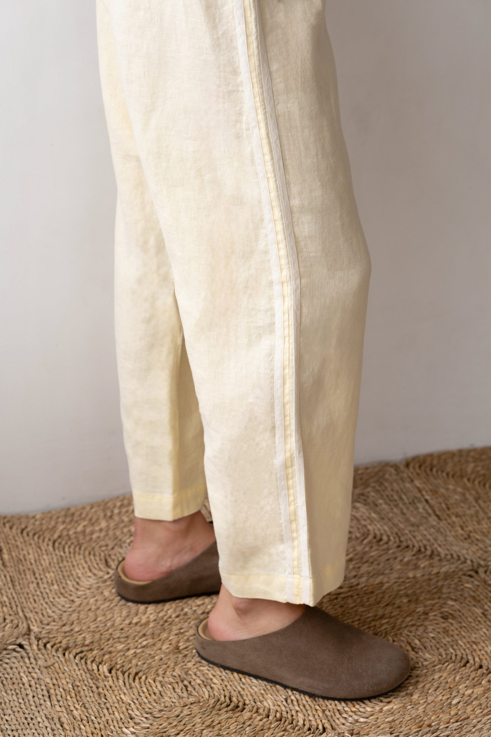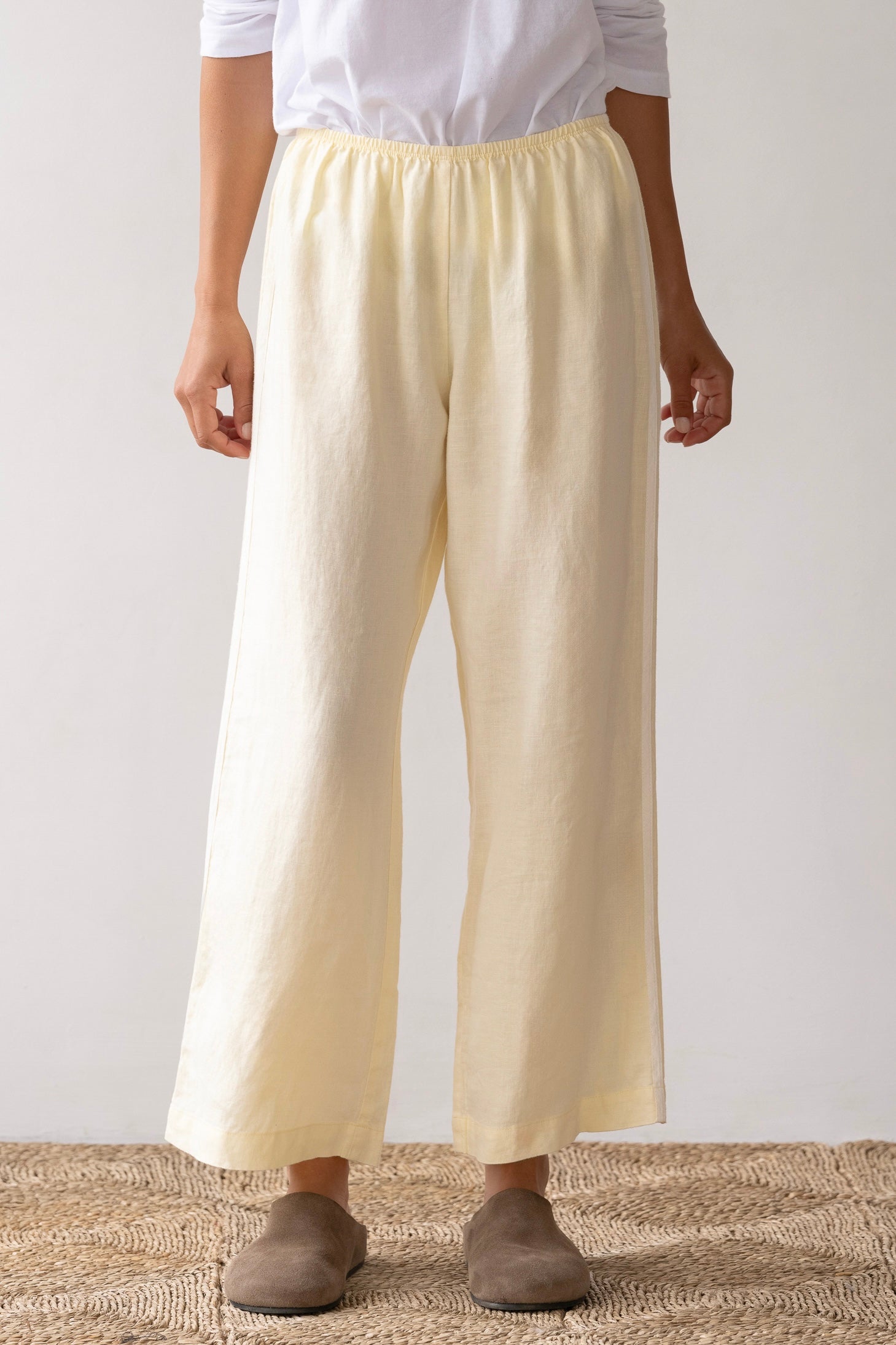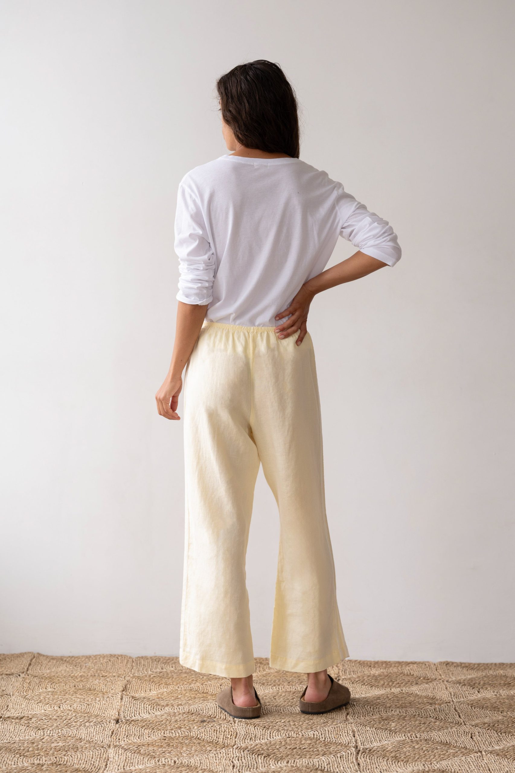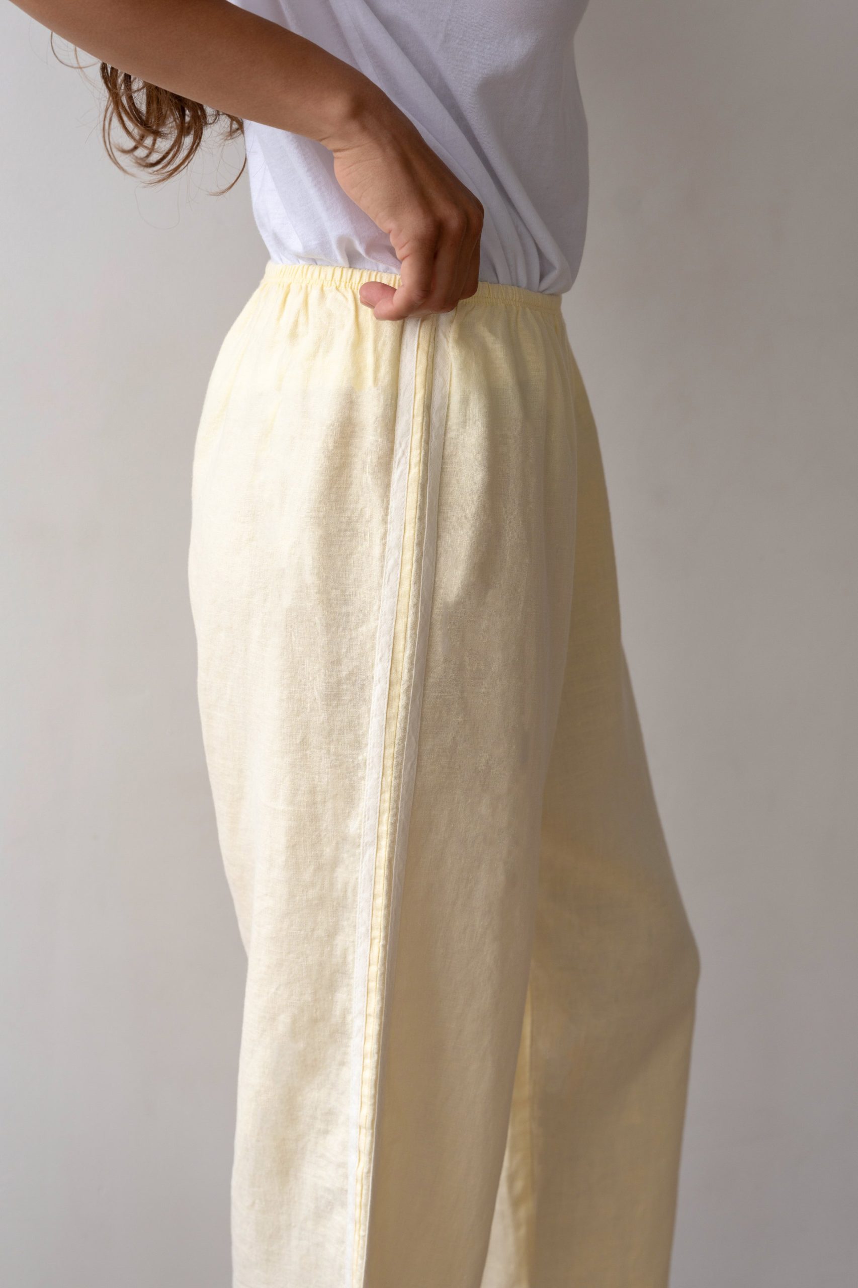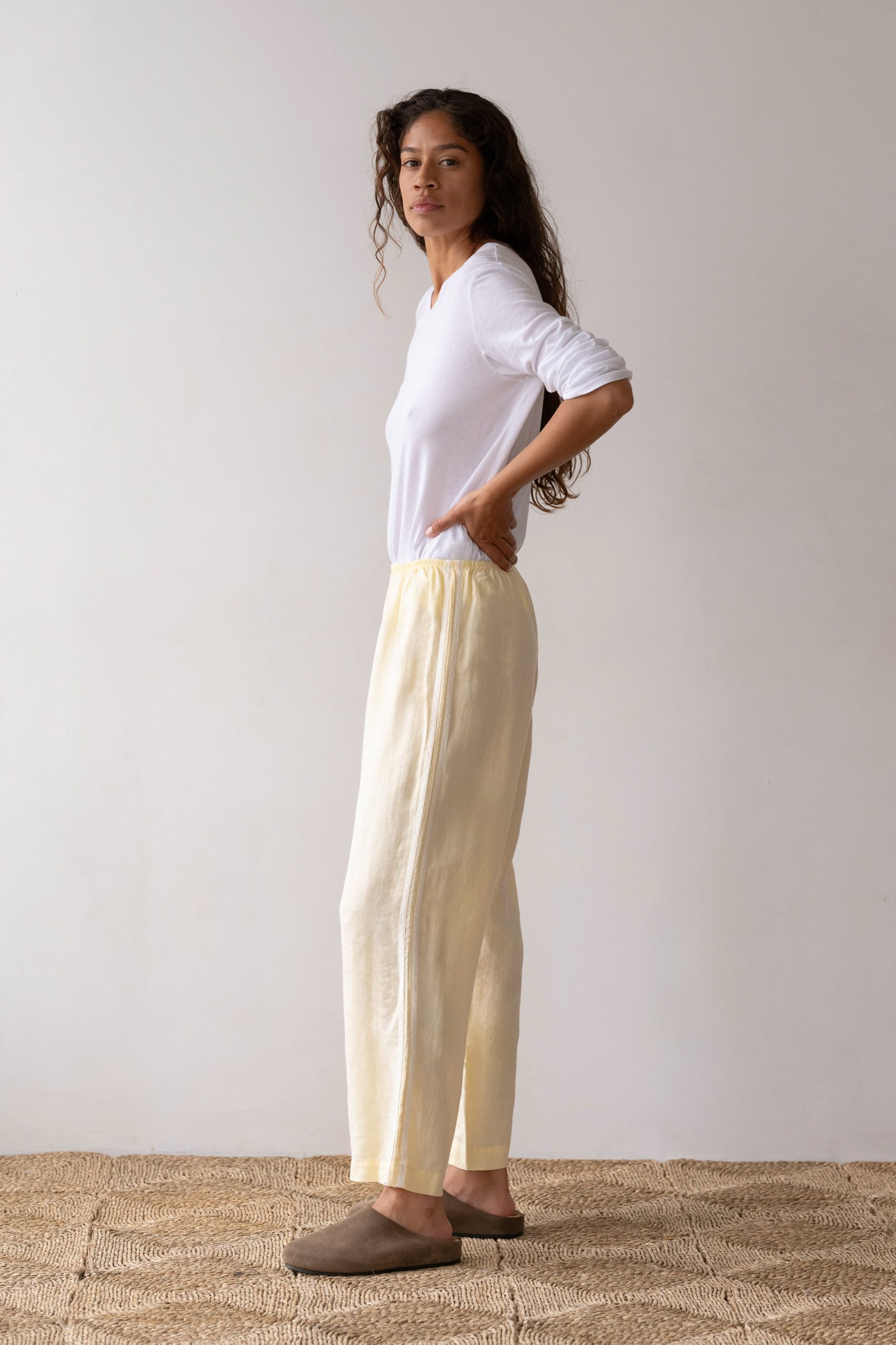 Our best-selling silhouette, reimagined in our signature lightweight linen. Designed with a cropped fit, comfortable elastic waistband, straight-leg cut, and finished with racer stripes along each leg.