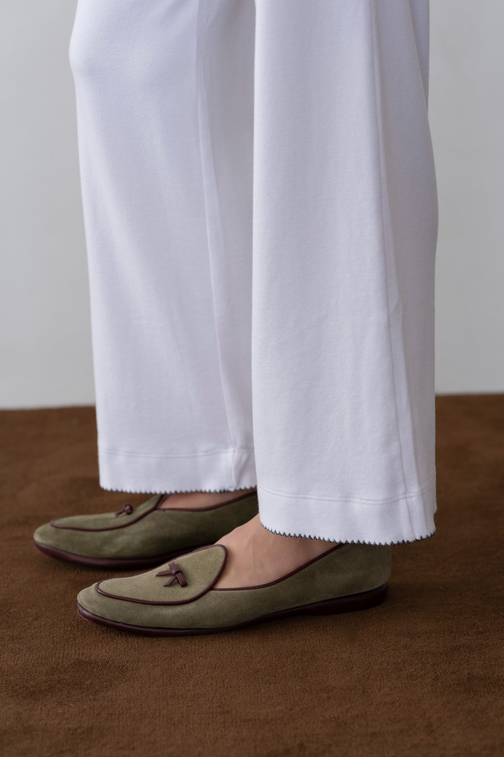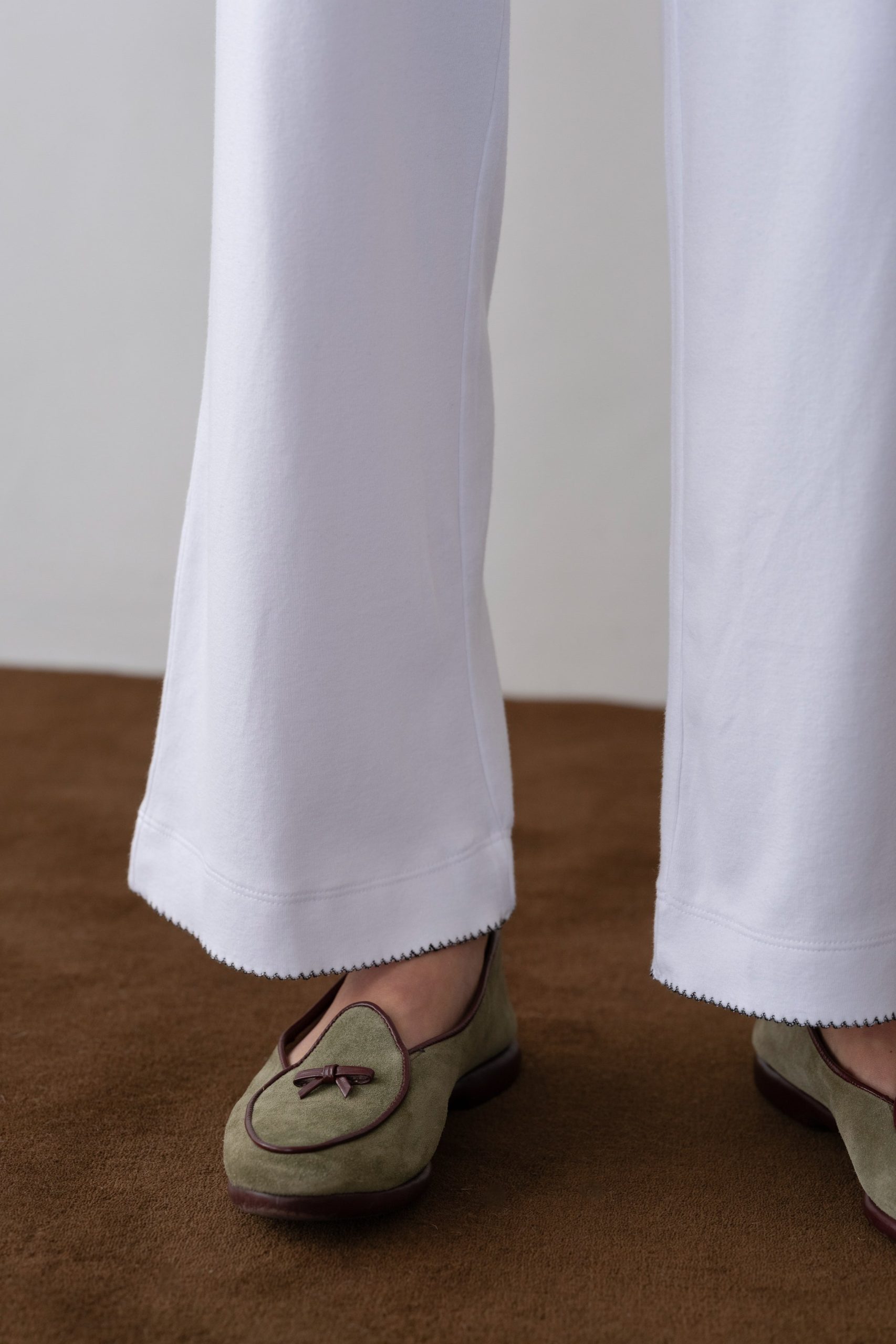 The Baby Rib Scallop Contrast Pant is a fresh take on our best-seller, now updated with contrast stitching at the hem. Crafted from our signature butter-soft fabric, this style features a comfortable elastic waistband, a cropped fit, and scalloped edges. Effortlessly blending comfort and style, these are the pants you'