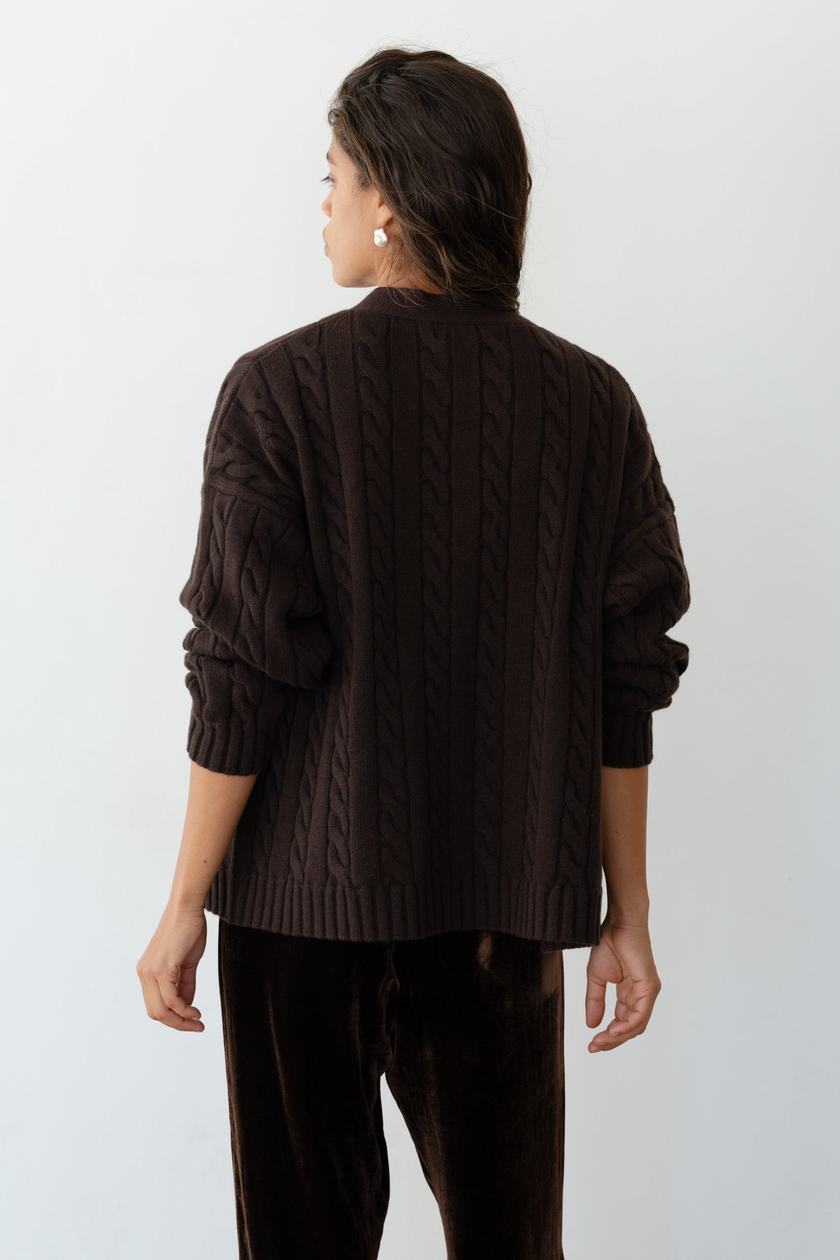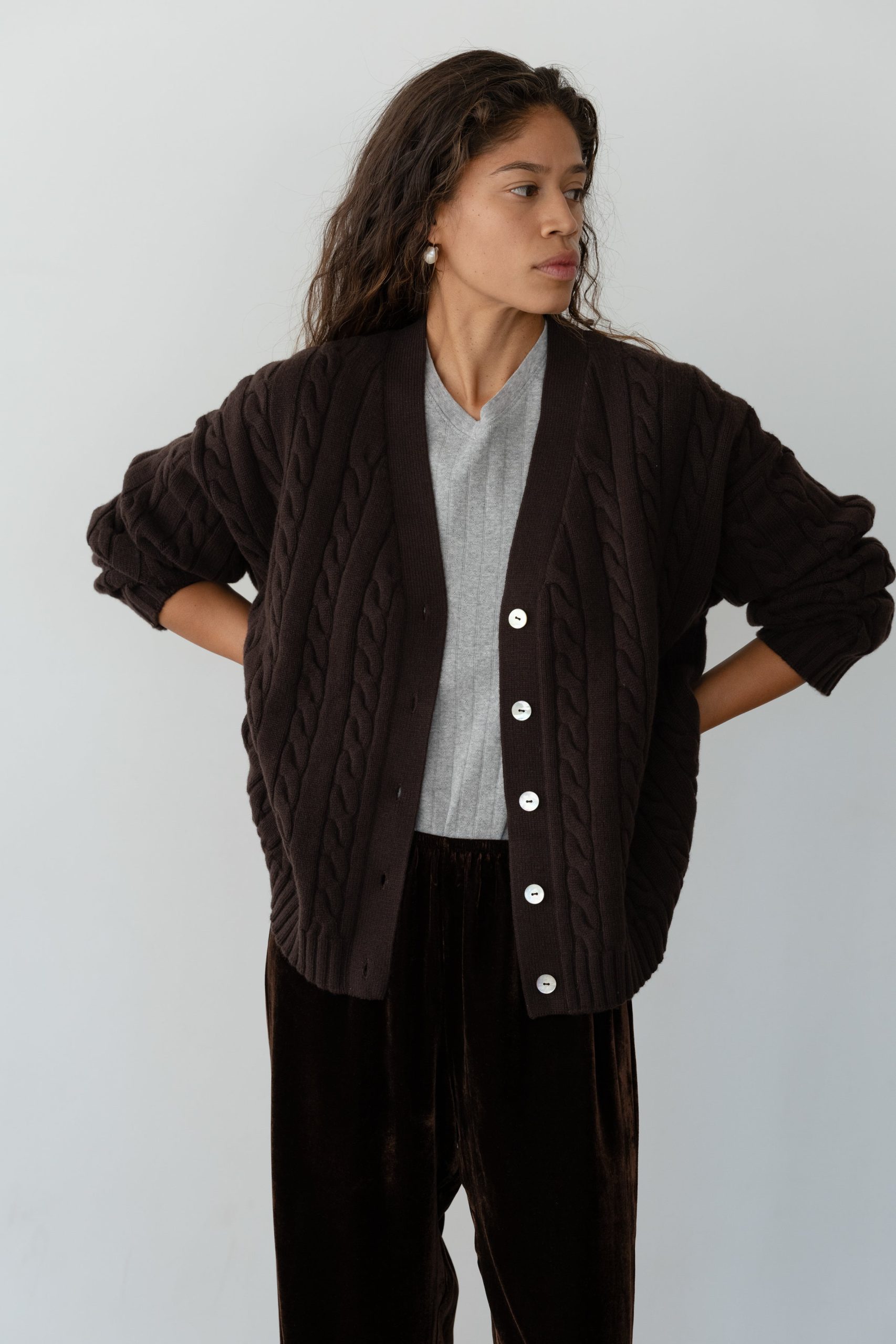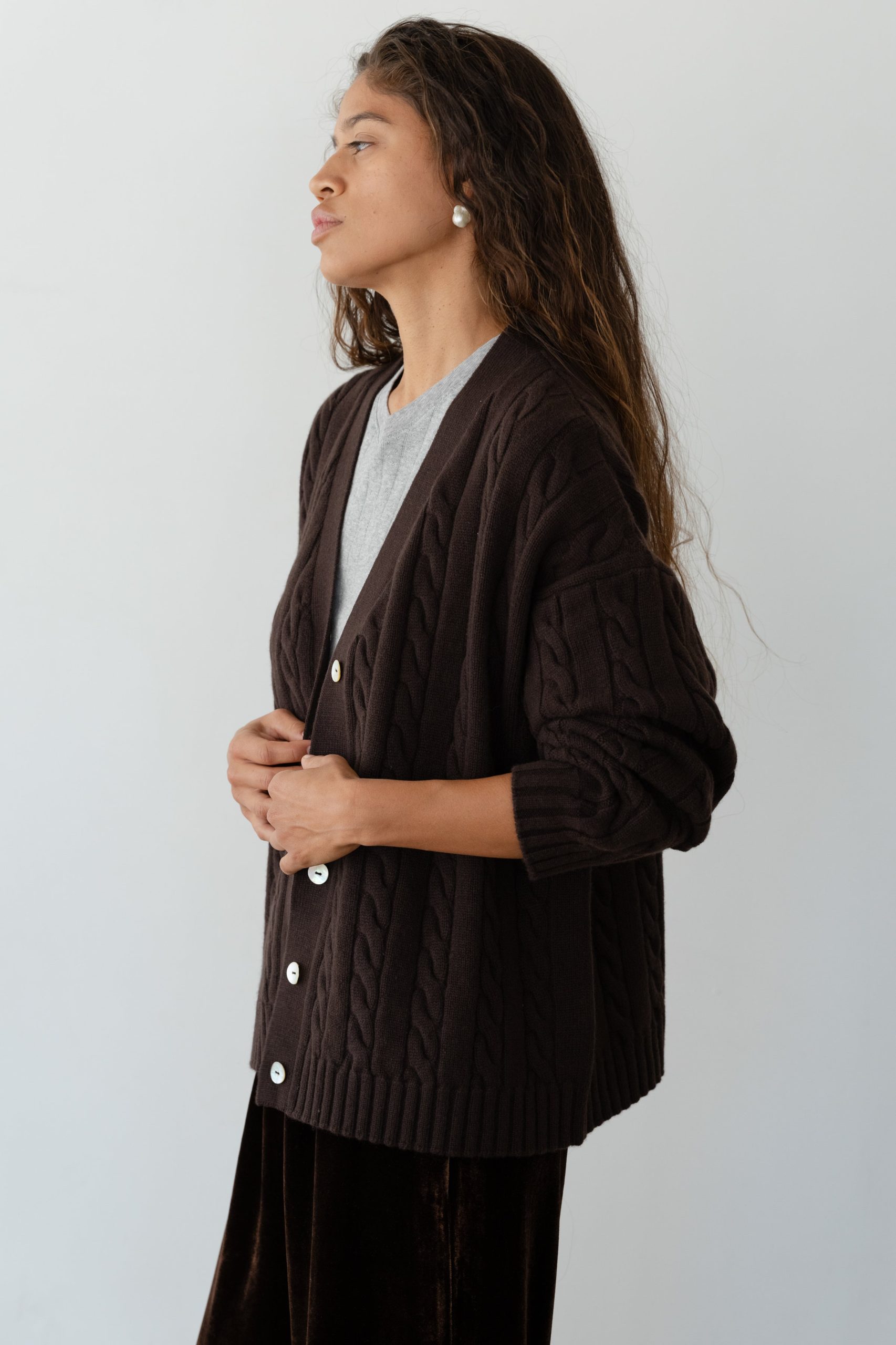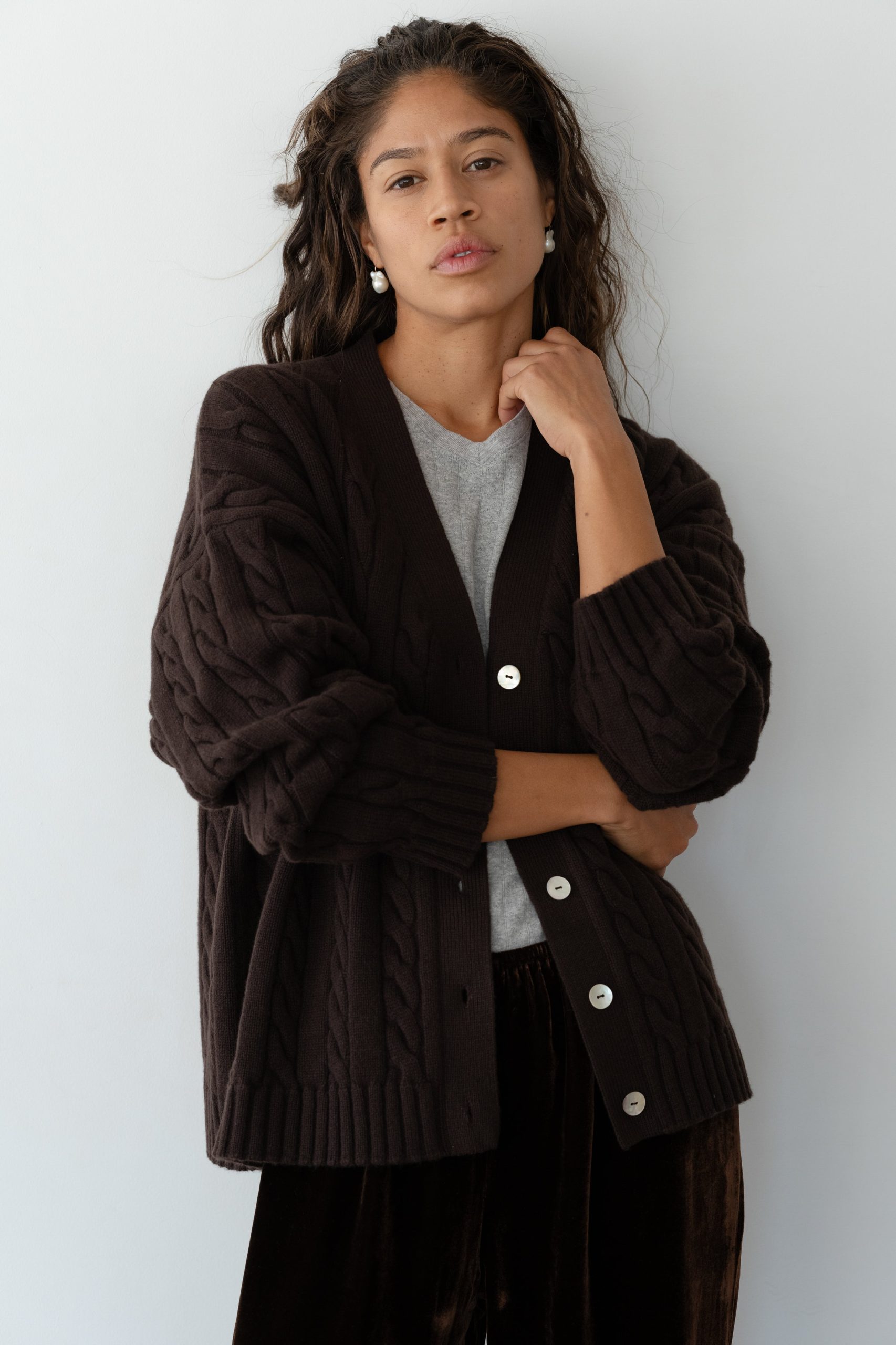 Be the first to review “Donni Women’s The Cable V-neck Cardigan | Espresso” Cancel reply