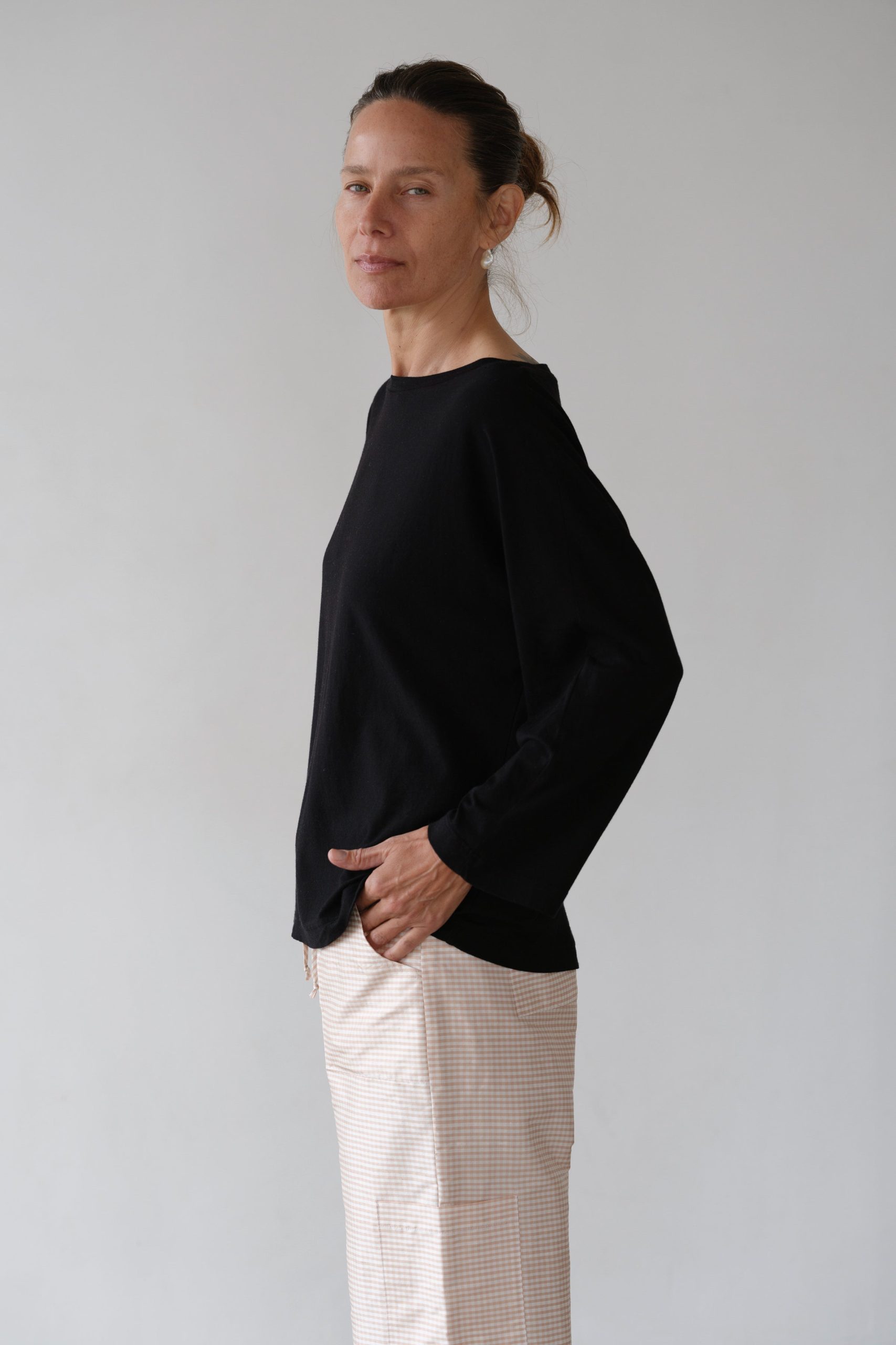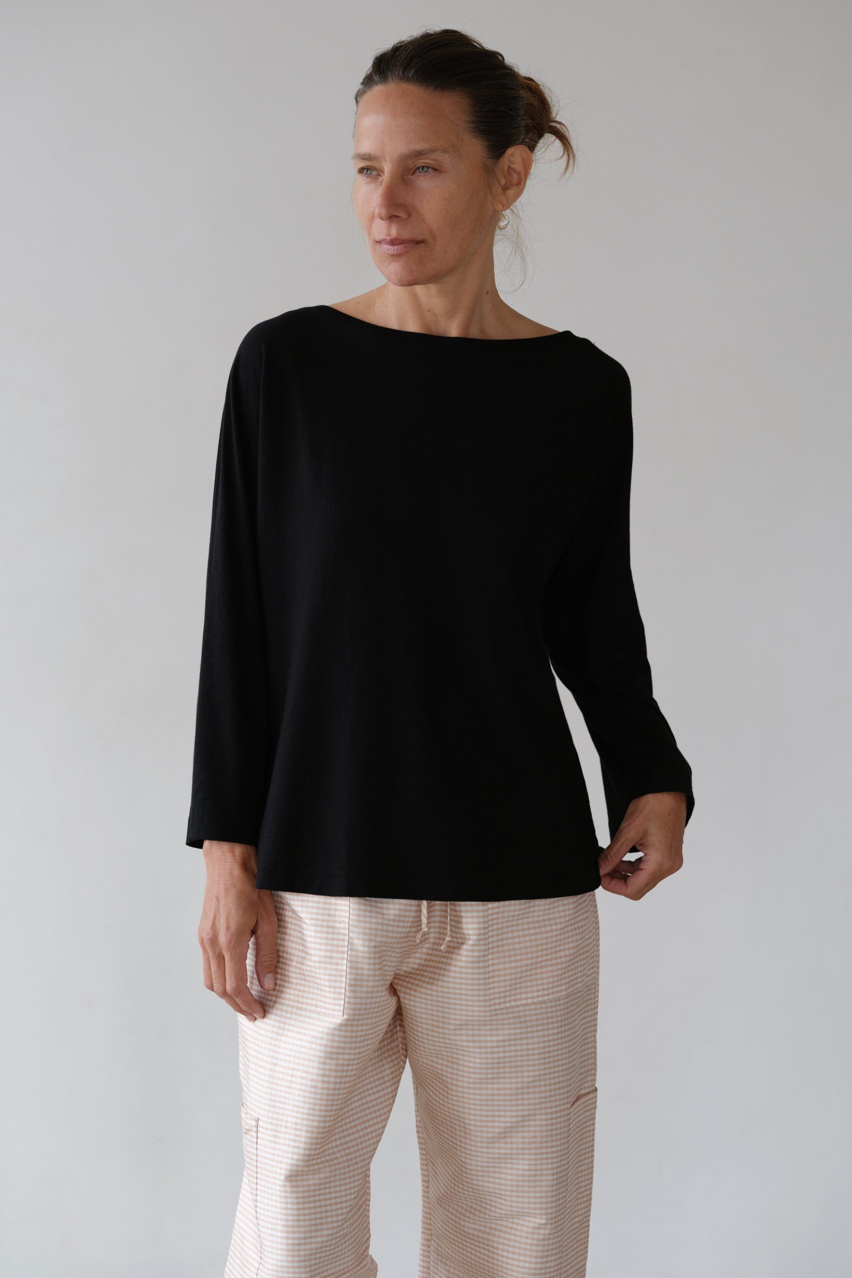 The Jersey Relaxed Boatneck is crafted from 100% cotton and designed with an easy fit, 3/4-length sleeves, and an elegant boat neckline.