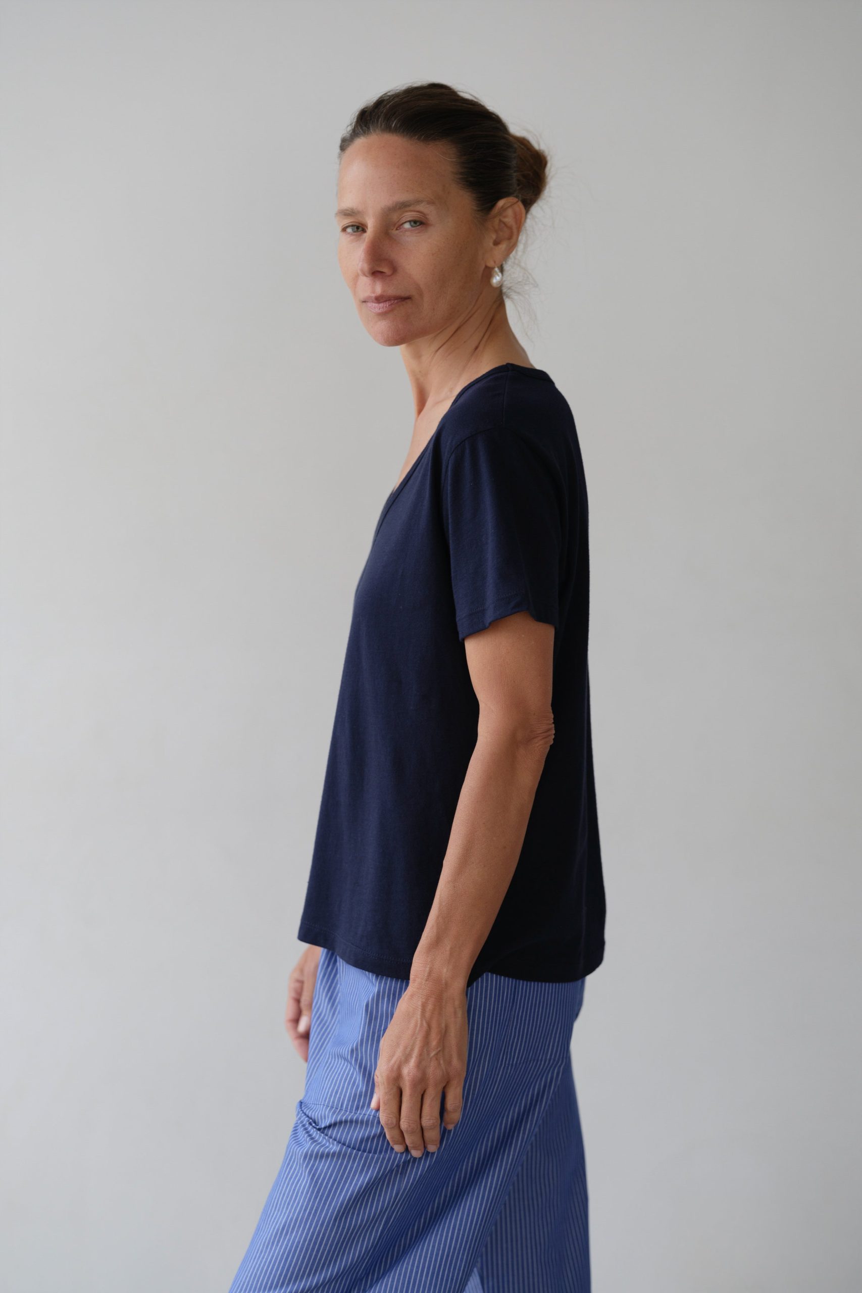 The Jersey Relaxed V-Neck is crafted from 100% cotton and features a softly structured V neckline and an easy, wearable fit.