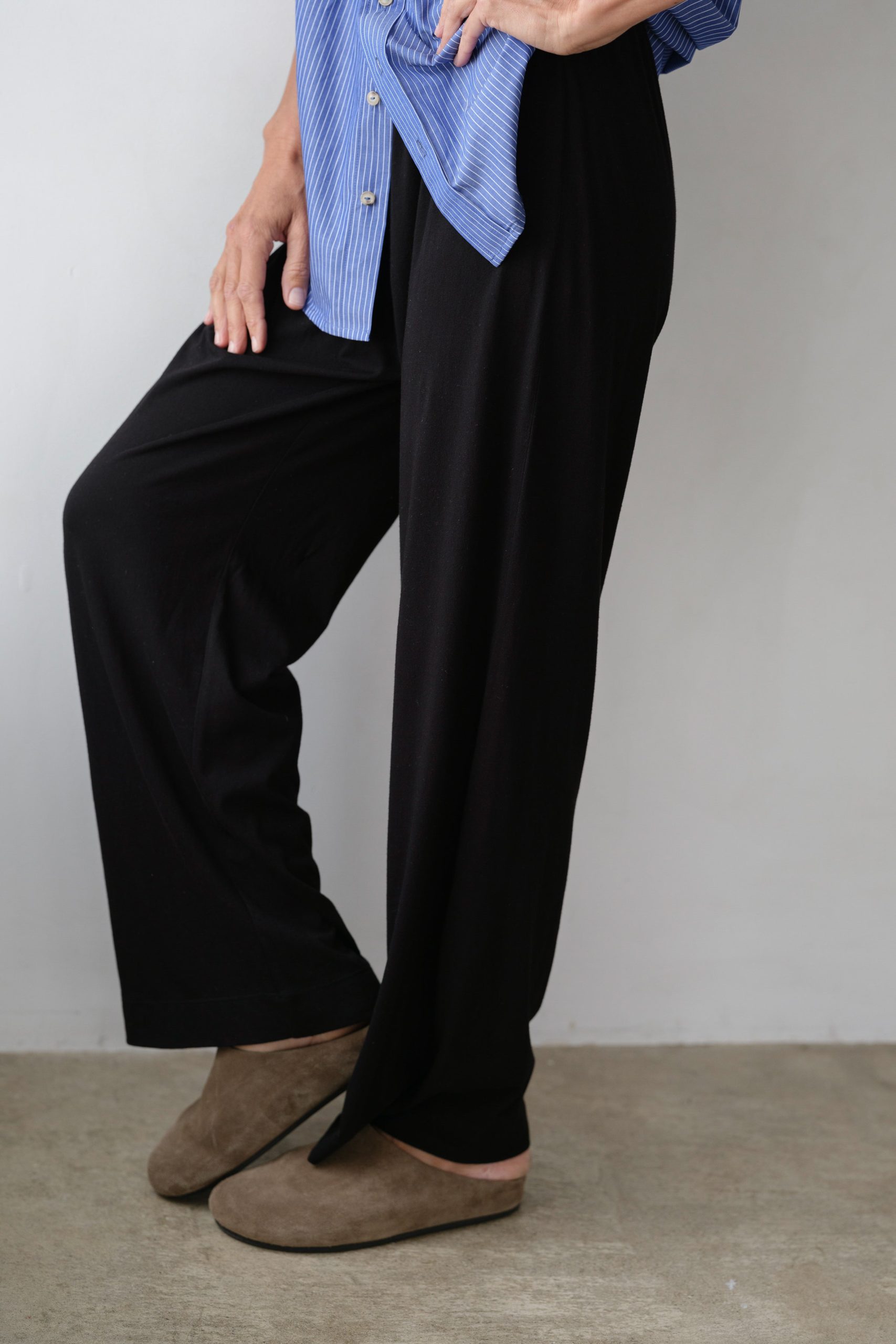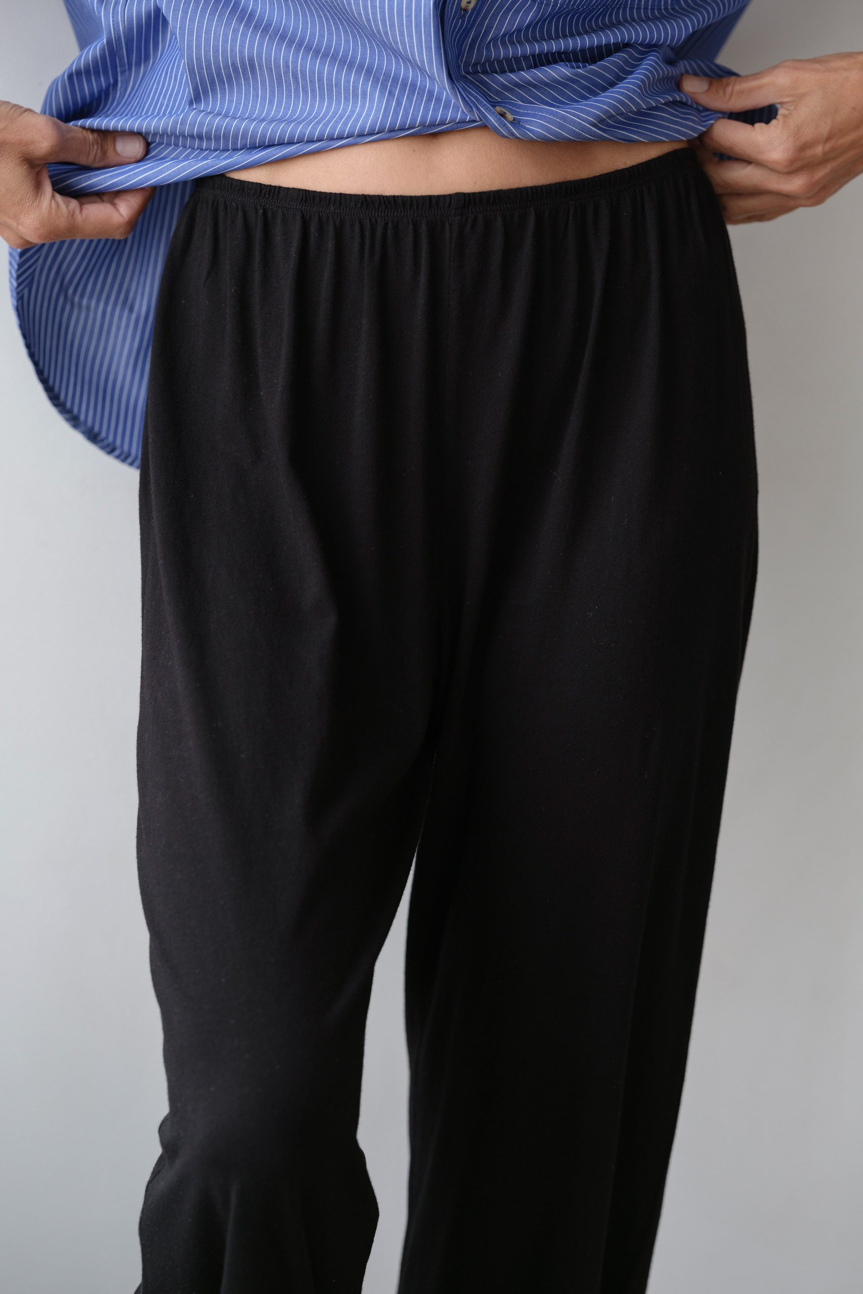 The Jersey Simple Crop Pant is made from 100% cotton and designed for effortless comfort. It features a straight leg, easy elastic waistband, and a cropped silhouette.