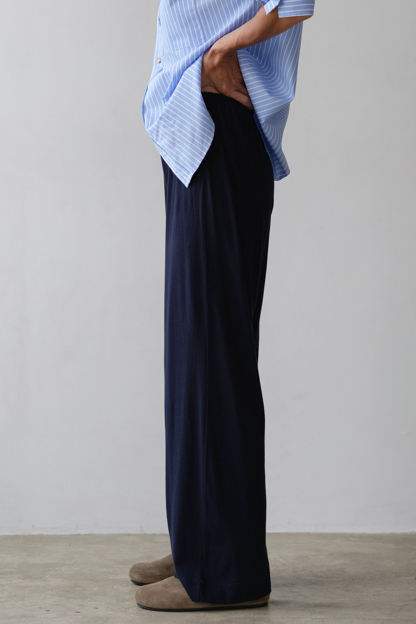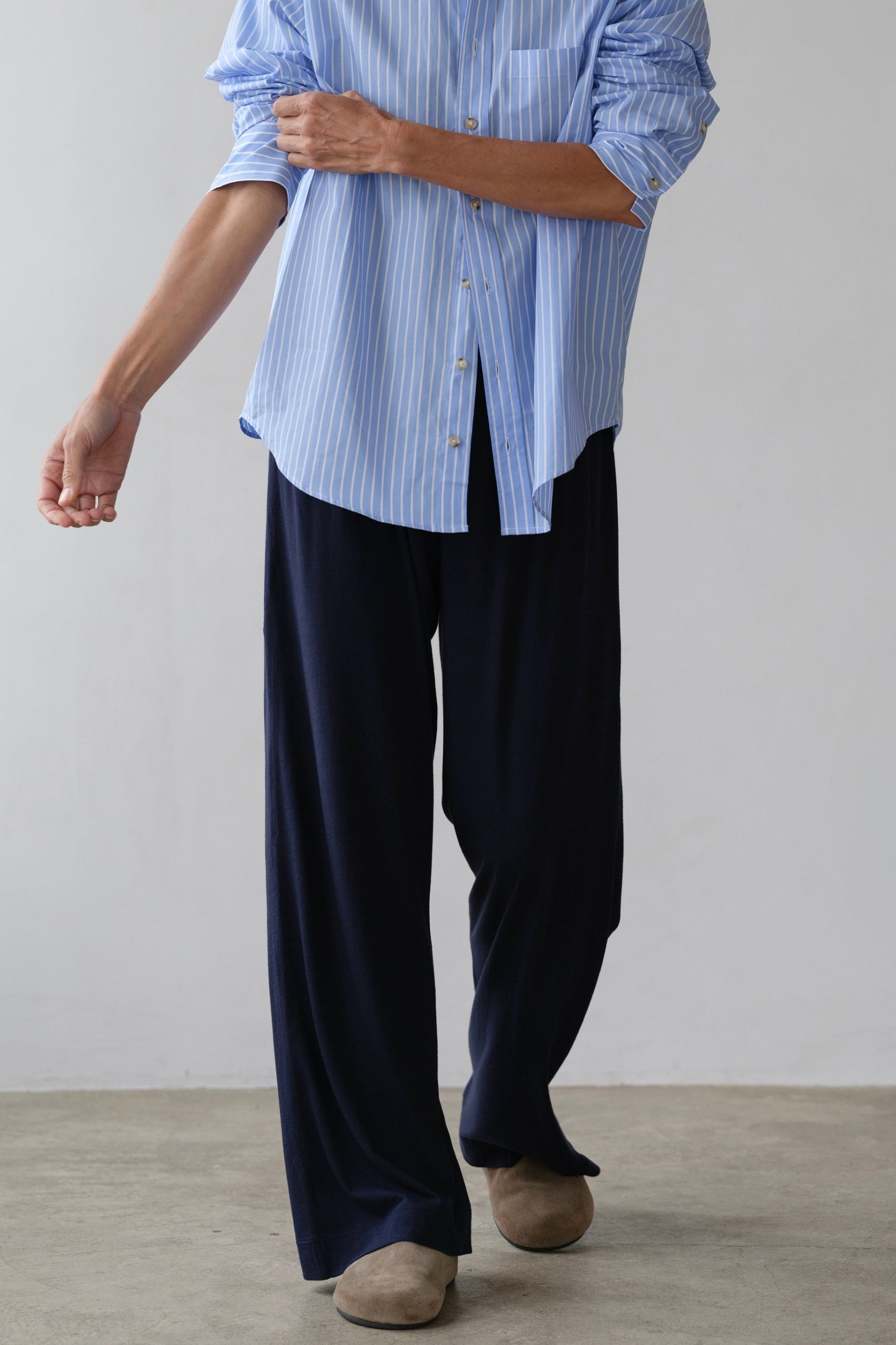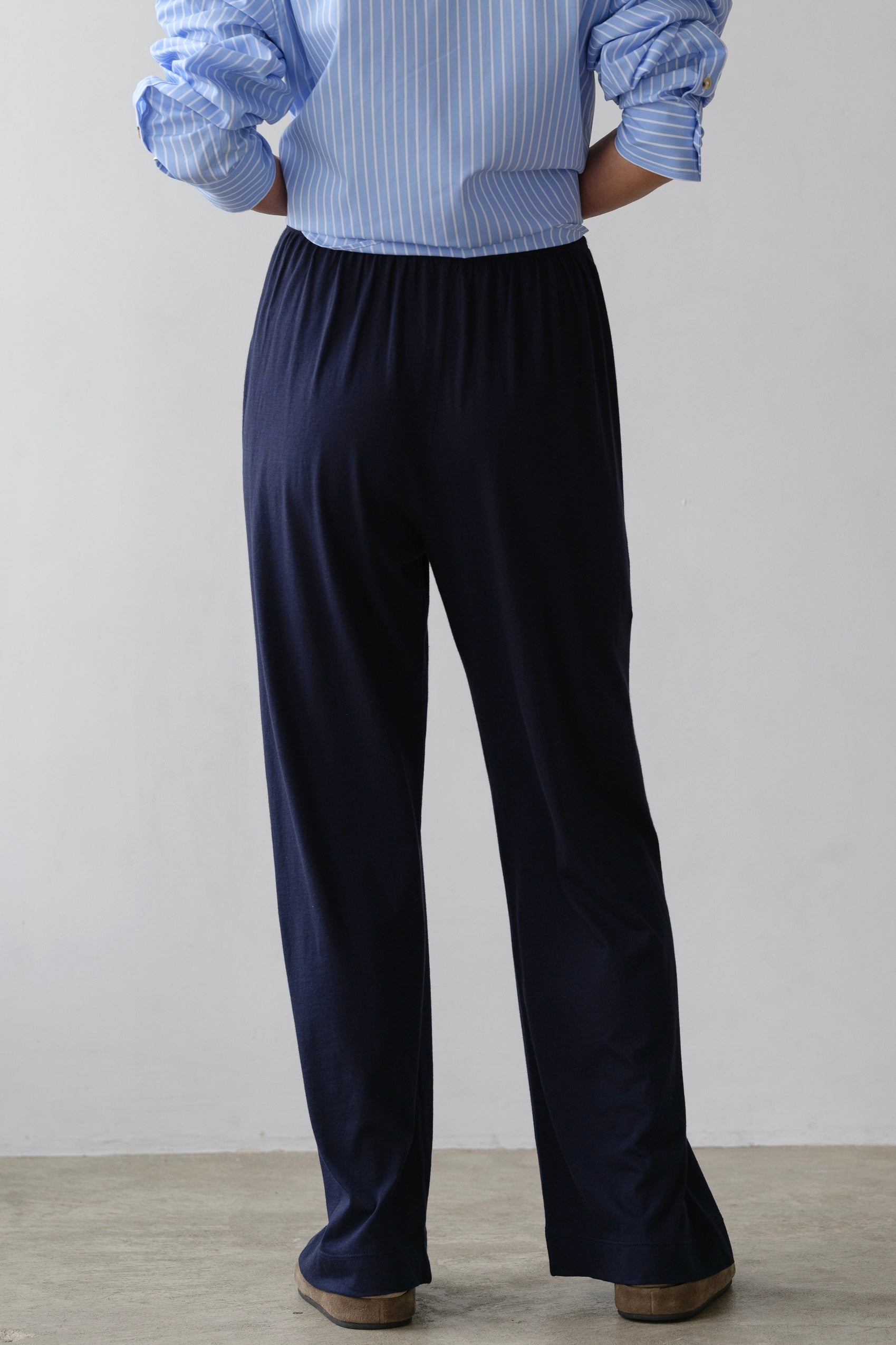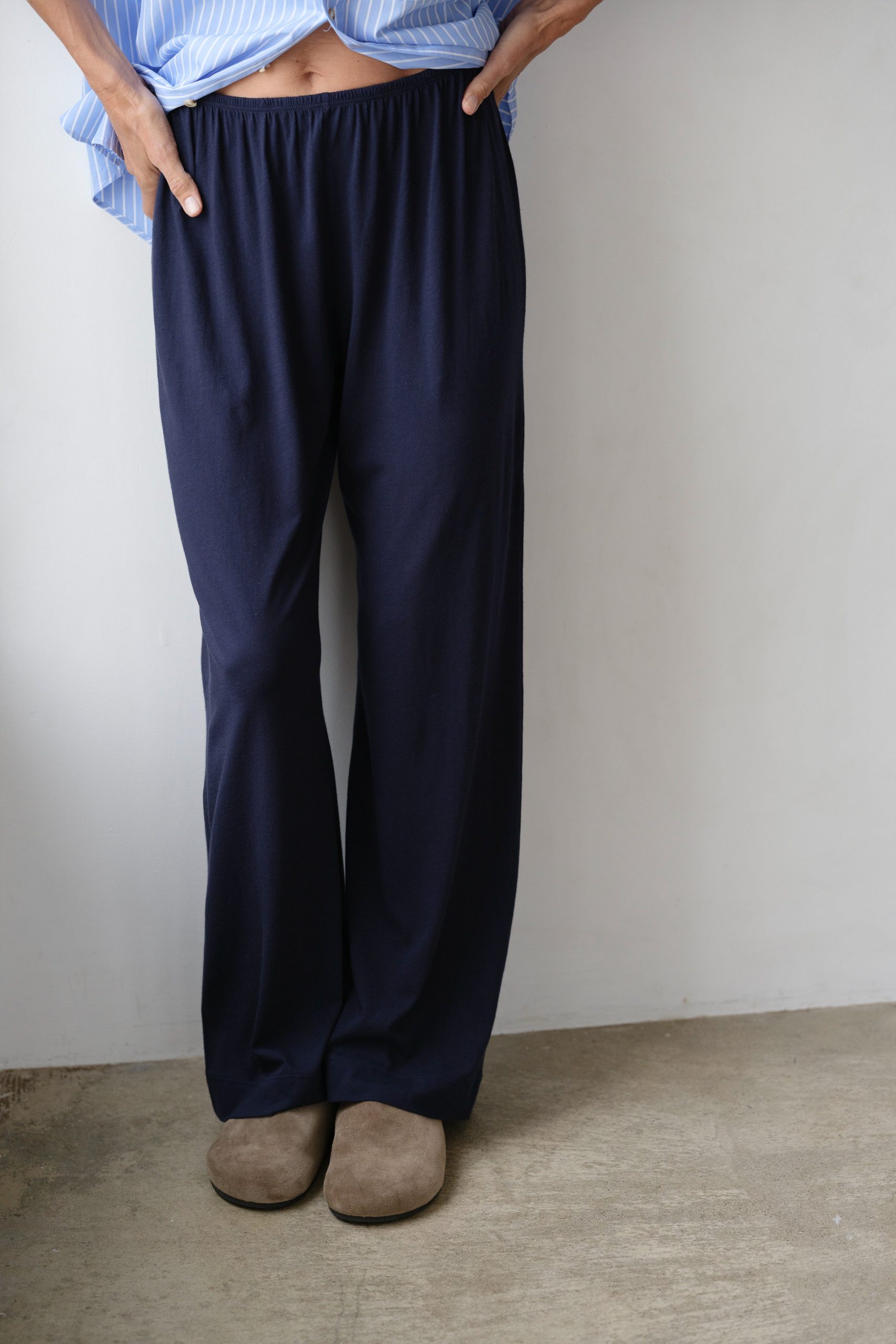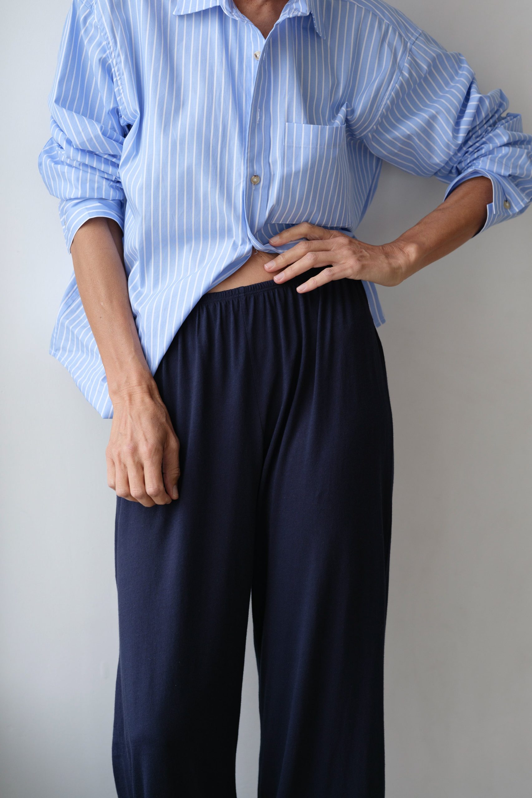 The Jersey Simple Crop Pant is made from 100% cotton and designed for effortless comfort. It features a straight leg, easy elastic waistband, and a cropped silhouette.