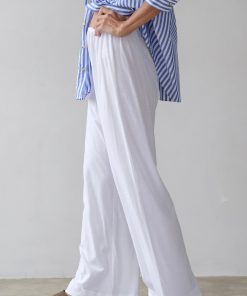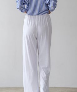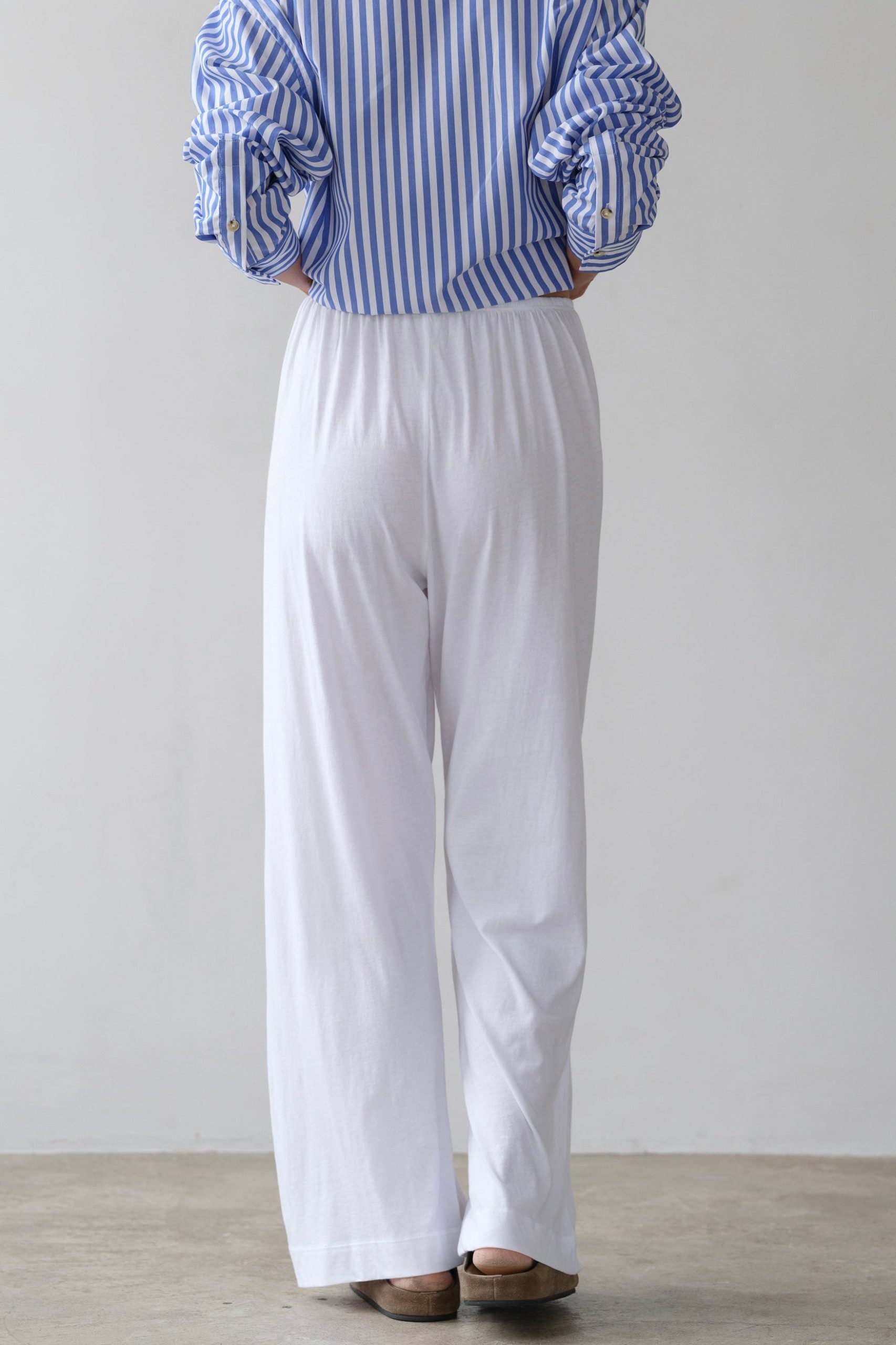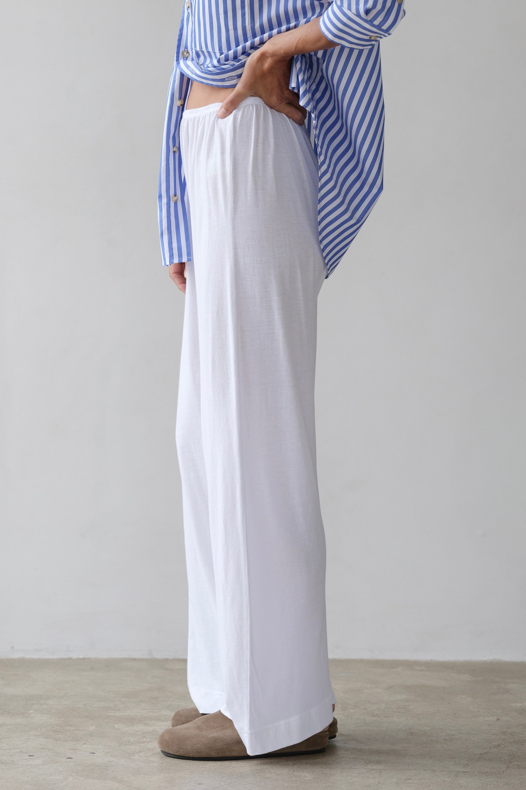 The Jersey Simple Crop Pant is made from 100% cotton and designed for effortless comfort. It features a straight leg, easy elastic waistband, and a cropped silhouette.
