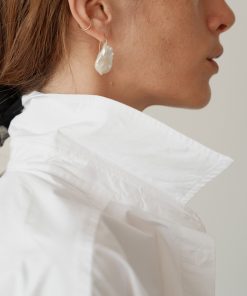 The June White Pearl Drop Earrings are handcrafted locally in Los Angeles and feature a single baroque pearl affixed to a 14k gold hook for effortless wear. Each pearl is naturally formed and celebrated for its one-of-a-kind shape and inherent imperfections, measuring approximately ½". No two are alike, making every pa
