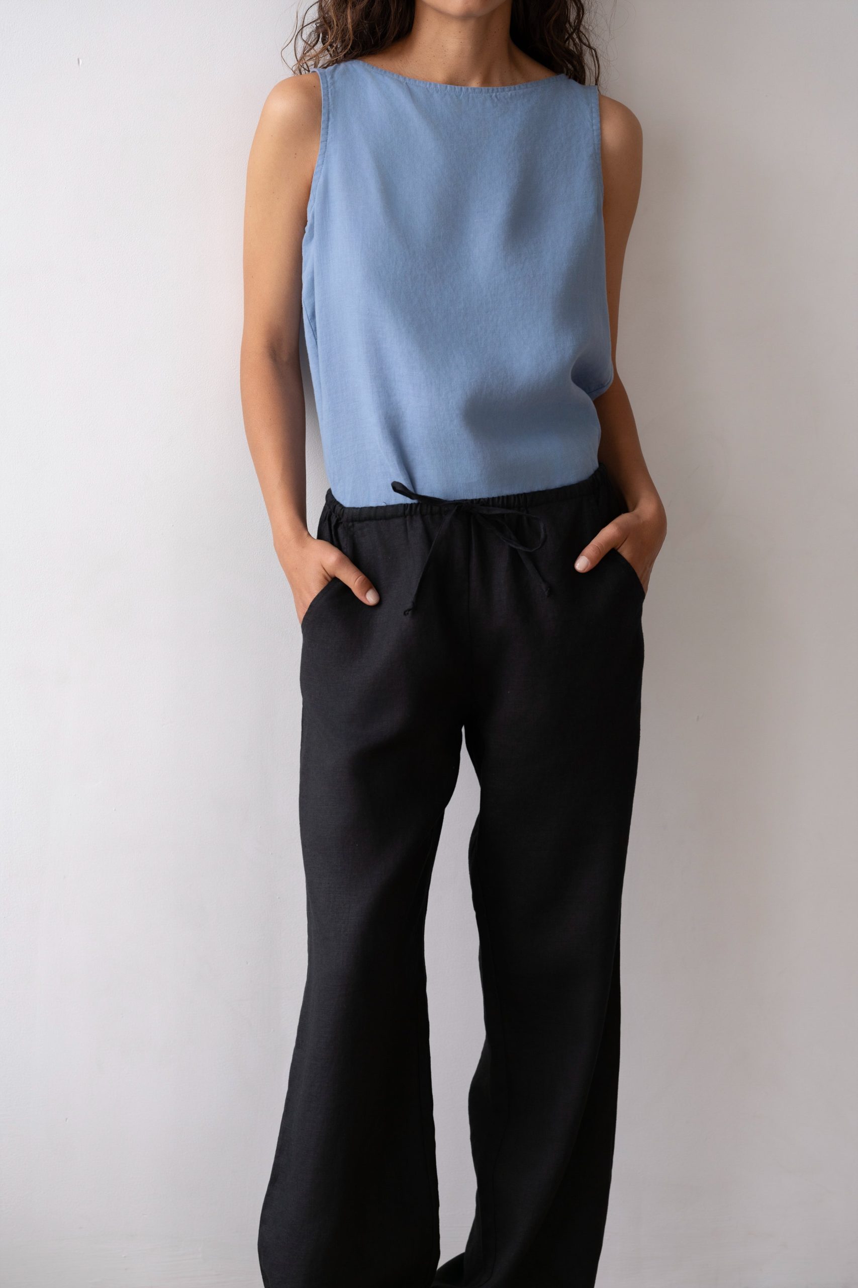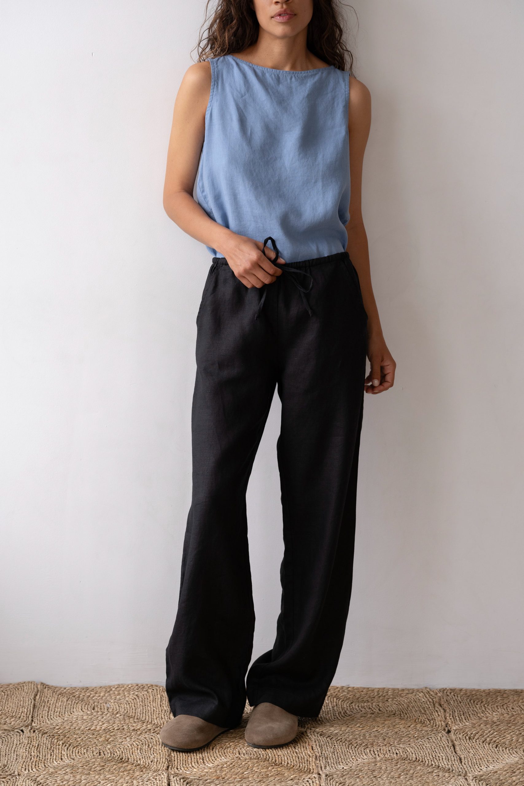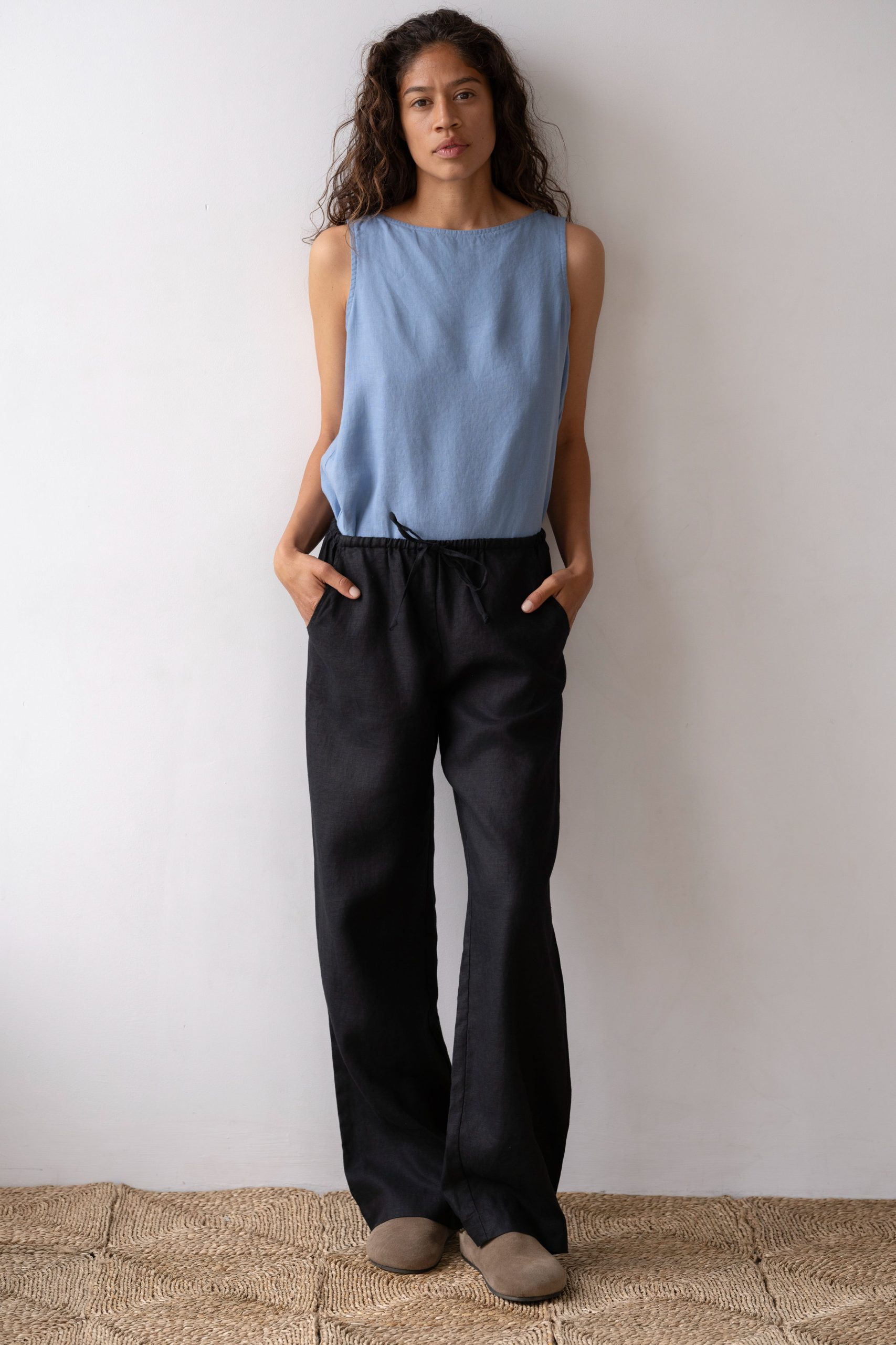 The Linen Drawstring Pant is crafted from our signature lightweight linen, known for its airy feel and effortless drape. Designed with a relaxed fit, full-length, elastic drawstring waistband and side pockets. Please note: hemming may be required for those under 5'6".
