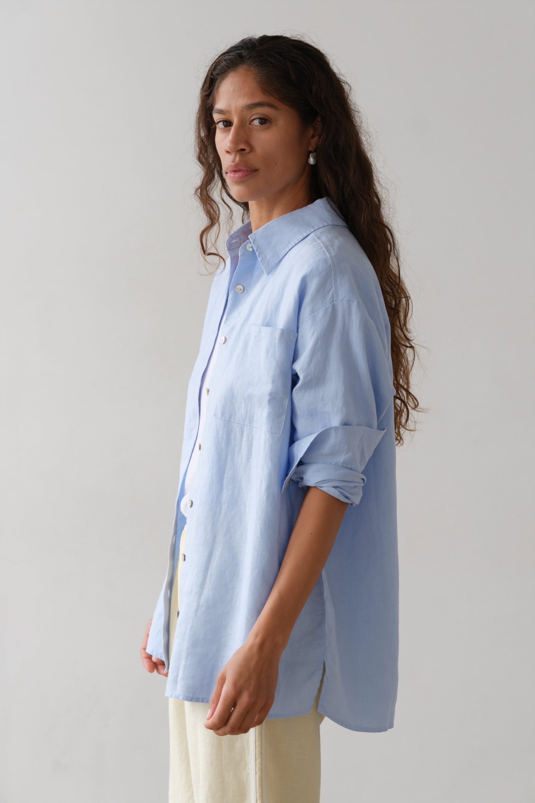 Be the first to review “Donni Women’s The Linen Relaxed Shirt | Sky” Cancel reply
