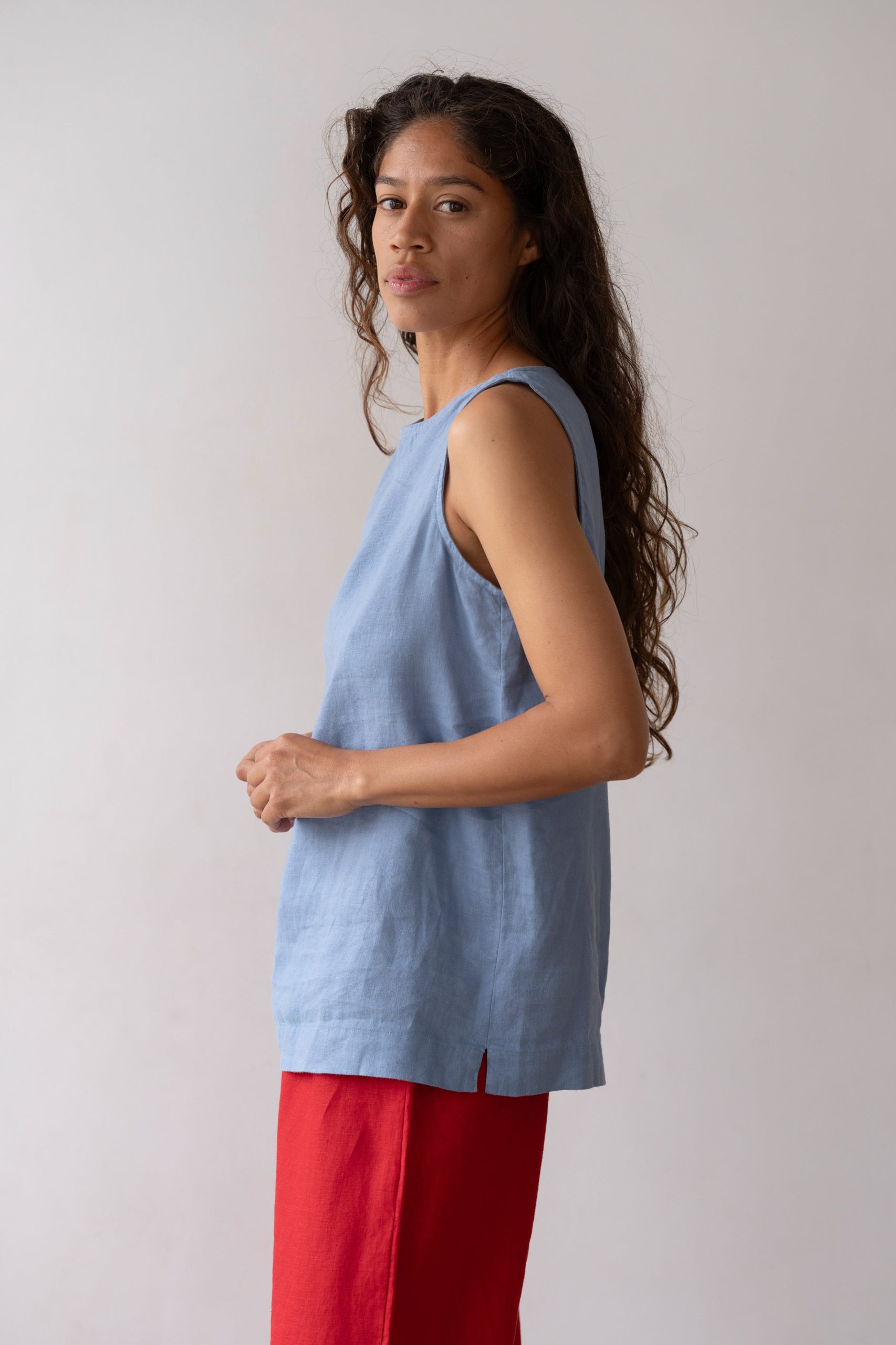 The Linen Shell is crafted from our signature lightweight linen, offering an airy feel and effortless drape. Designed with a relaxed fit and tunic-length silhouette, it's finished with a delicate keyhole back and a mother of pearl button closure.