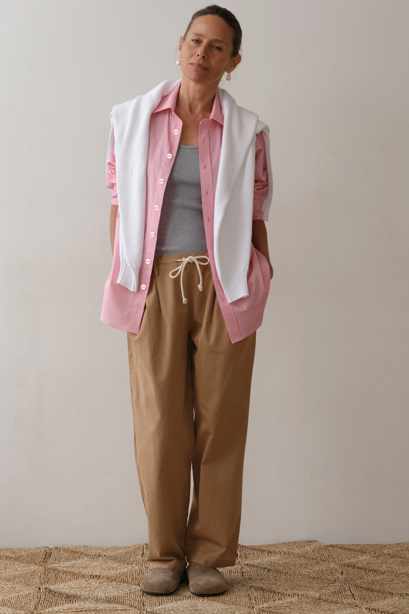 A timeless wardrobe staple designed for effortless styling. Crafted from 100% cotton, it features a back yoke with double pleats, a front square pocket, and pleated cuffs. Inspired by vintage men's shirting, its intentionally relaxed fit offers a perfect balance of structure and ease.