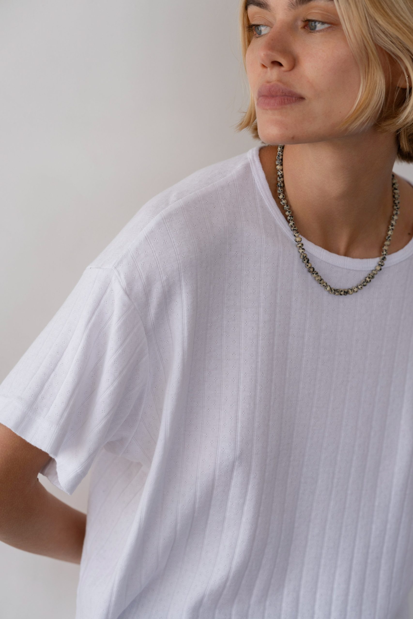 Donni Women’s The Pointelle Oversized Tee | Powder