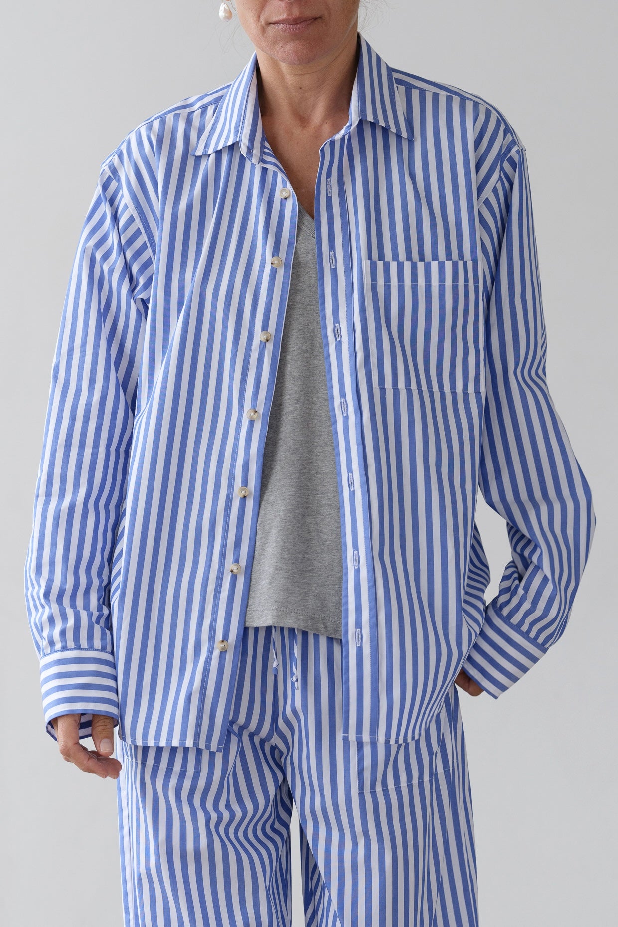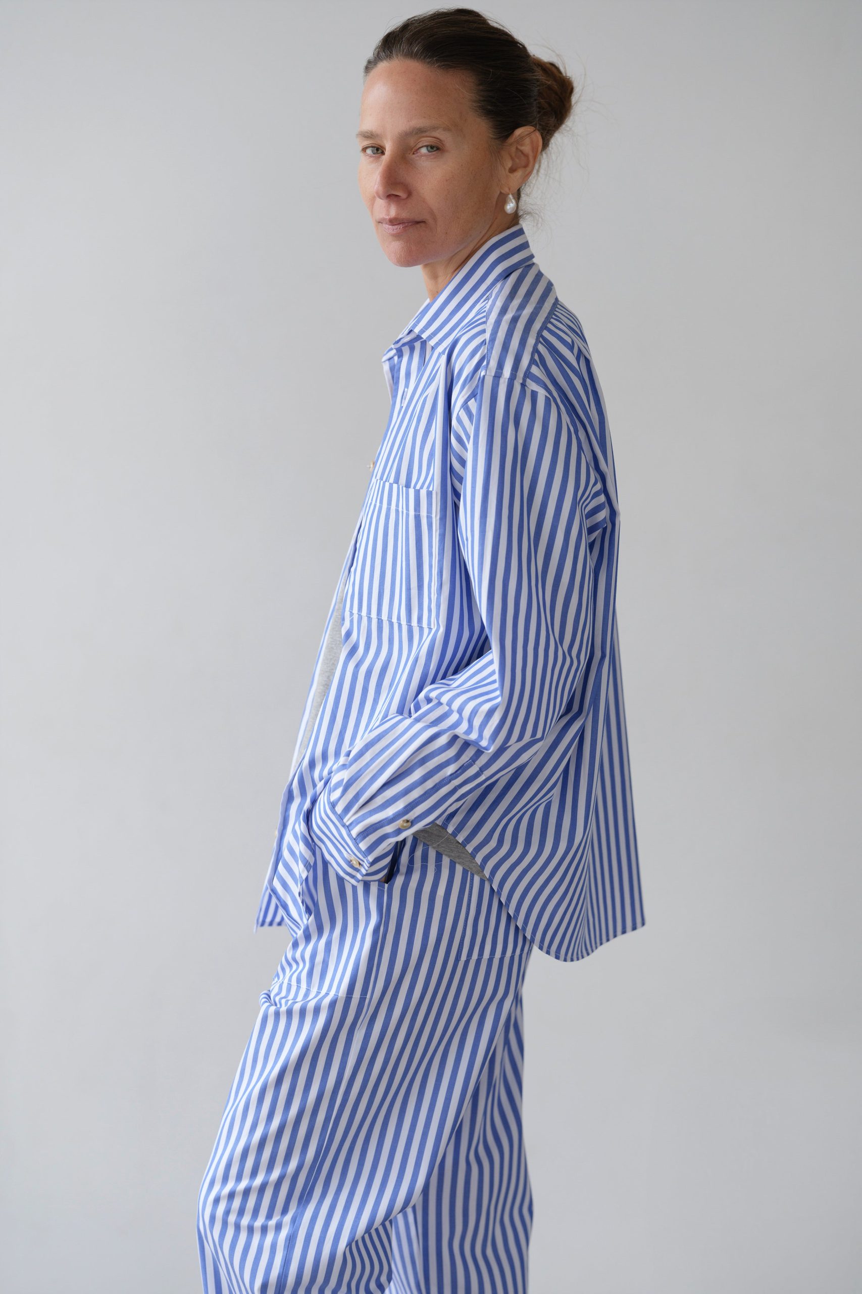A timeless wardrobe staple designed for effortless styling. Crafted from crisp cotton poplin, it features a back yoke with double pleats, a front square pocket, tortoise buttons, and pleated cuffs. Inspired by vintage men's shirting, its intentionally relaxed fit offers a perfect balance of structure and ease.