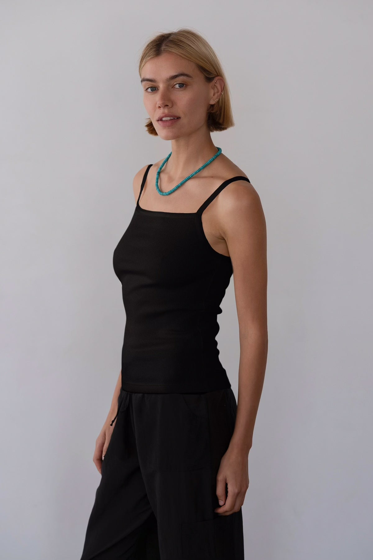 The Rib Satin Tank is crafted from our best-selling rib fabric, designed with a square neckline and finished with a satin-like trim for an elevated touch.