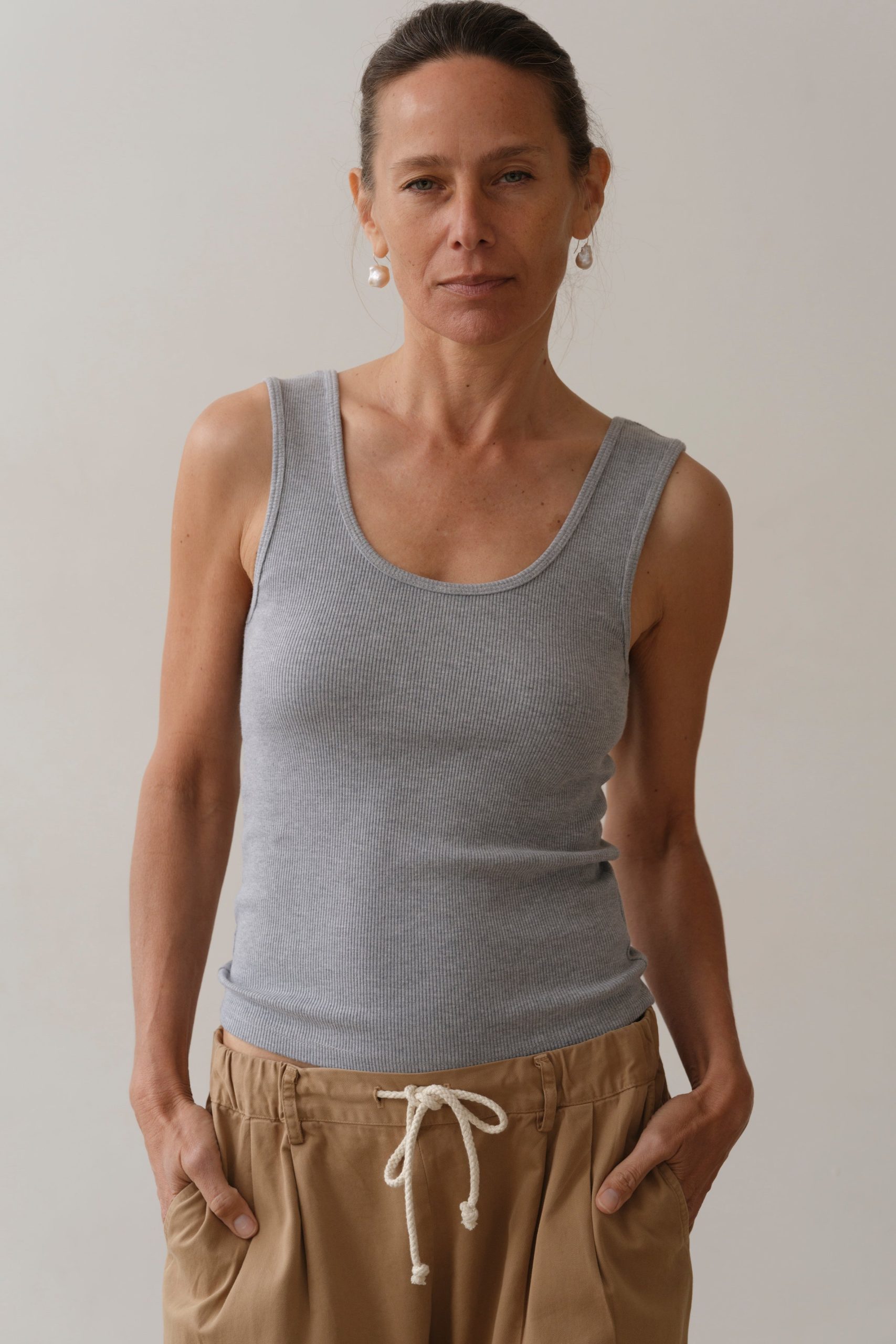 Our iconic rib fabric, reimagined in a versatile scoop tank made to wear anywhere. Effortlessly layer it or wear it solo—designed with a flattering scoop neckline in the front and back, and a fine rib texture that offers just the right amount of hold—no bra required.
