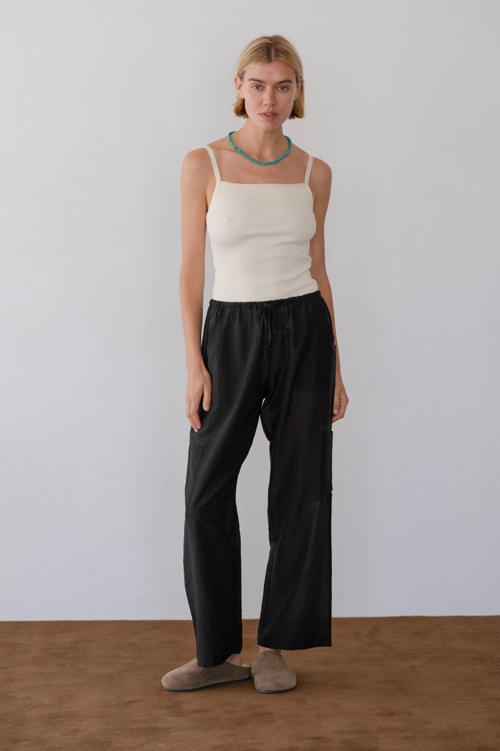 Be the first to review “Donni Women’s The Silk Cotton Sheer Cargo Pant | Jet” Cancel reply