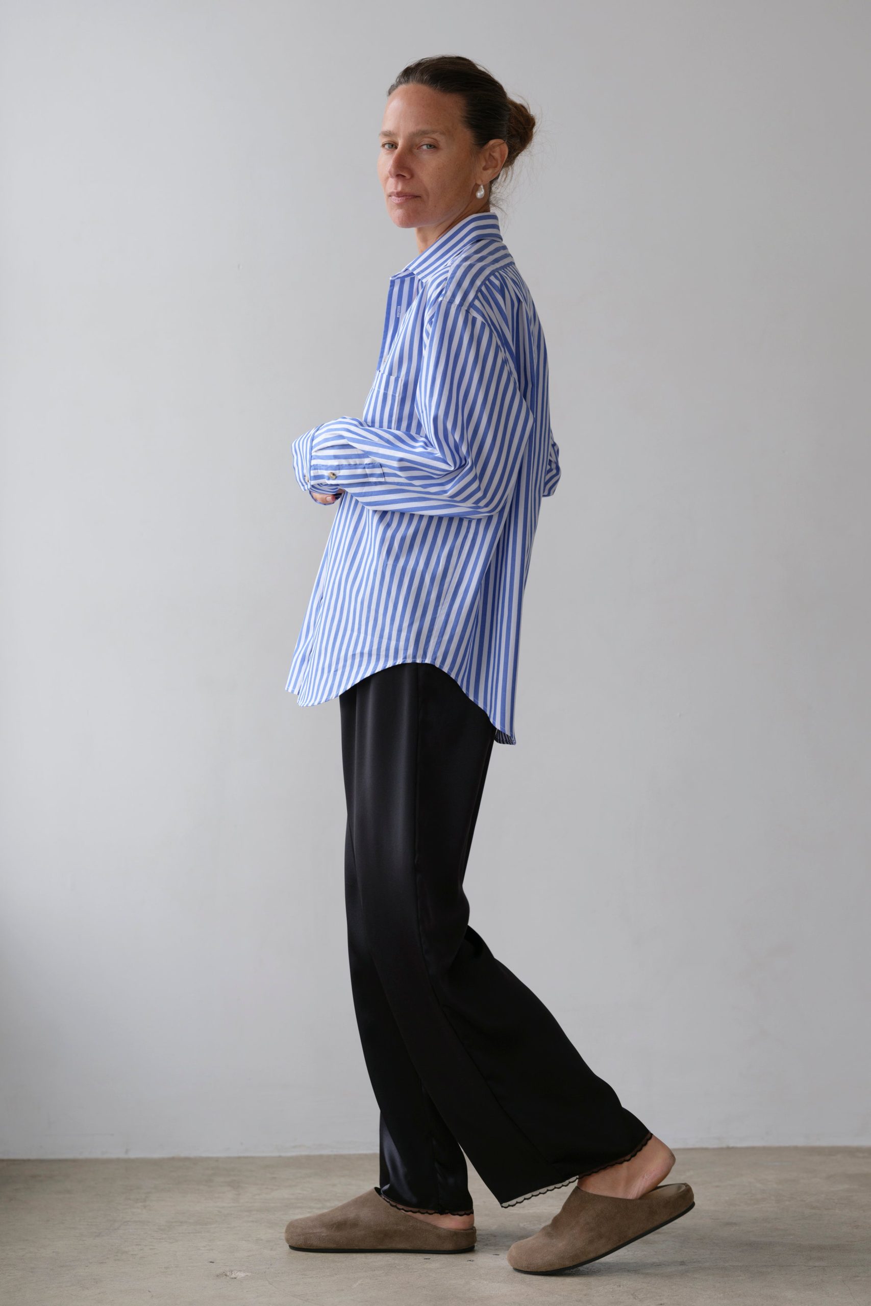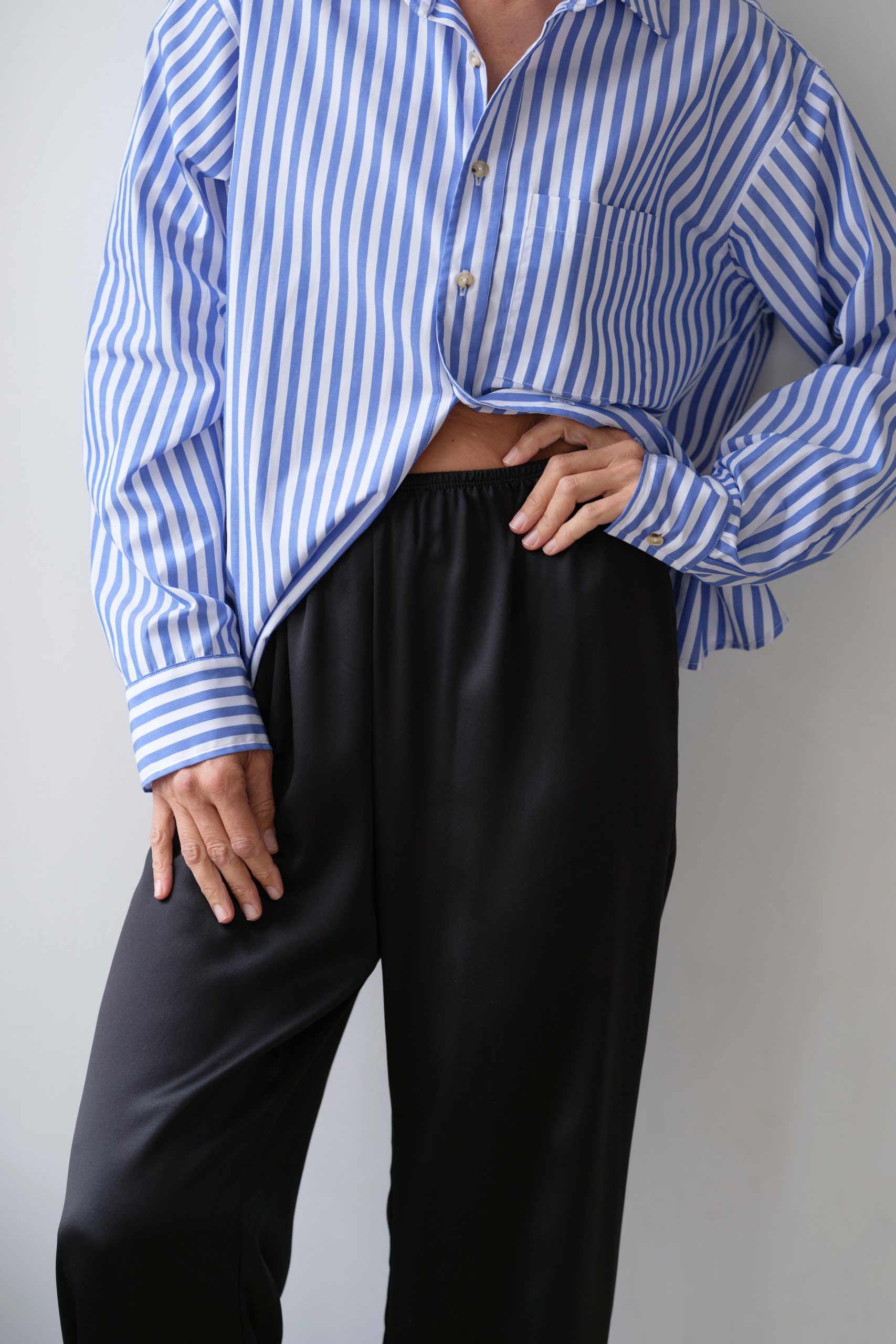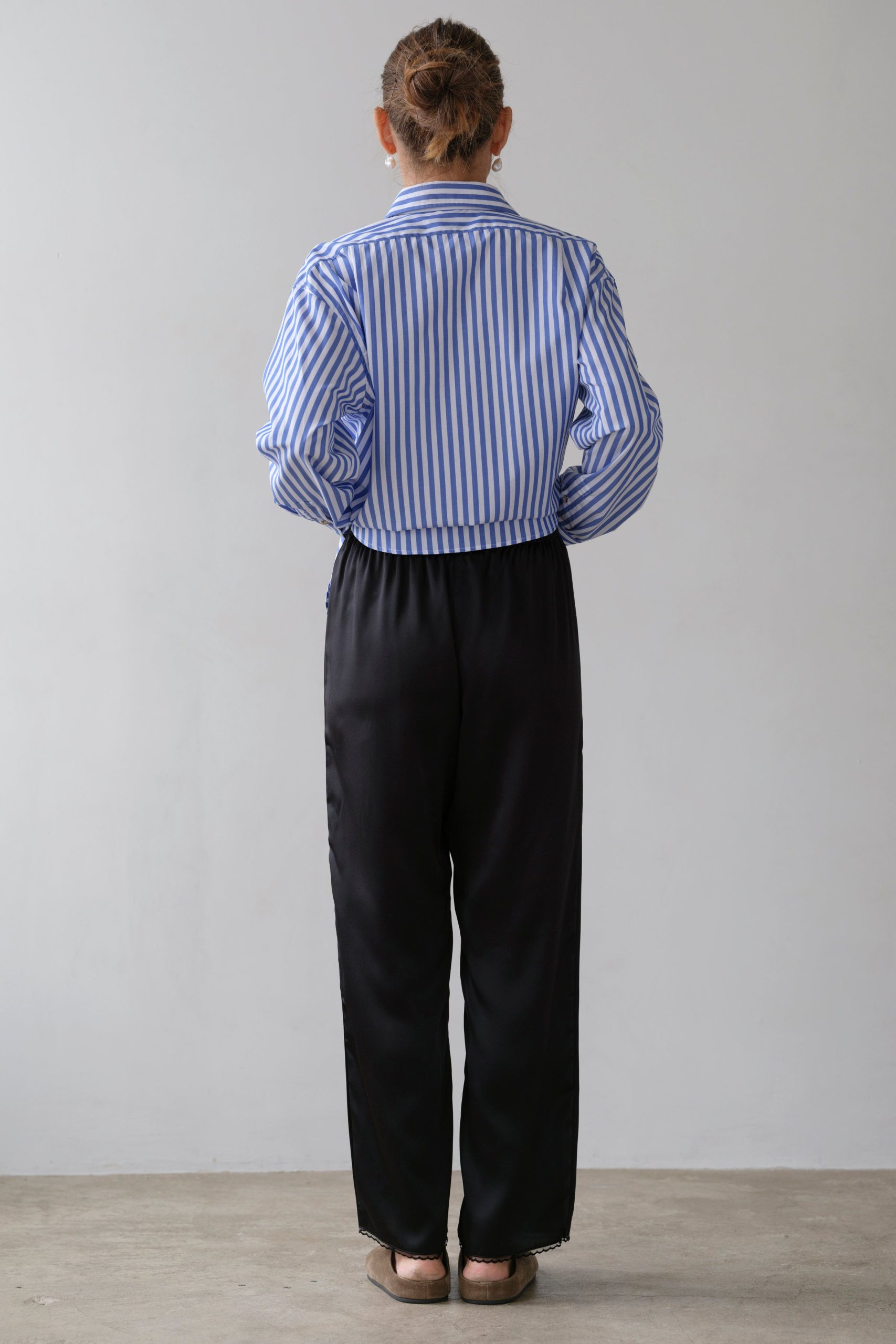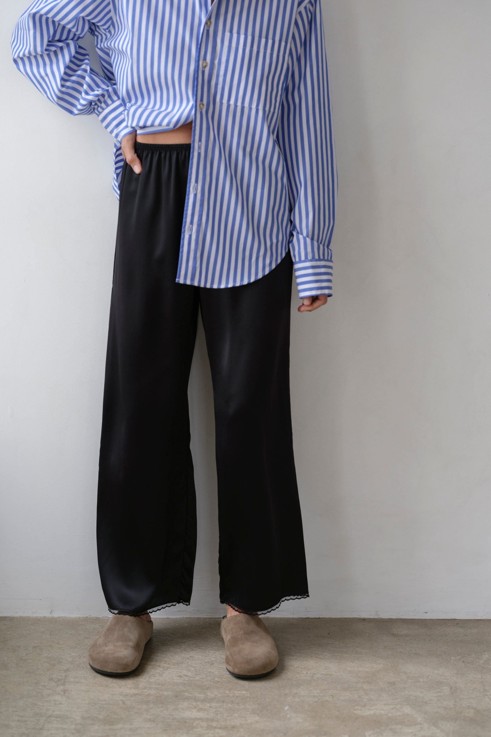 The Silk Lace Simple Pant is crafted from our luxe 100% silk, offering a fluid drape and buttery-soft feel. Designed with an easy elastic waistband and finished with a delicate lace trim at the hem for a feminine touch. A warm-weather staple—effortless paired with an oversized sweater or a classic tee.