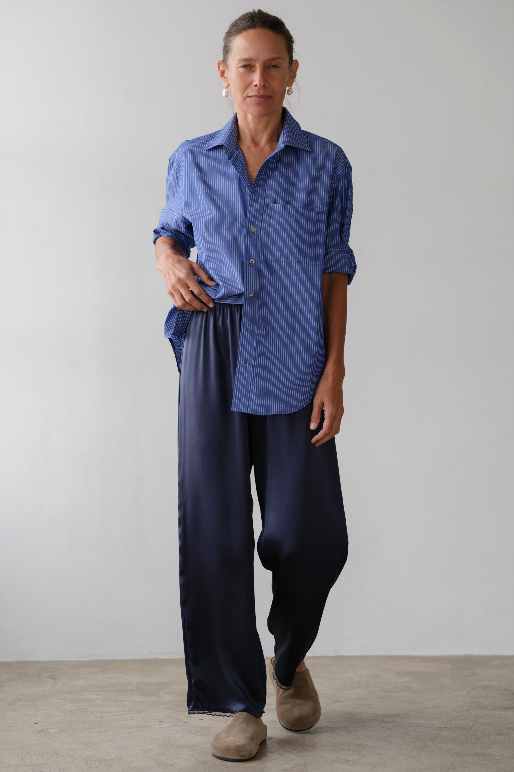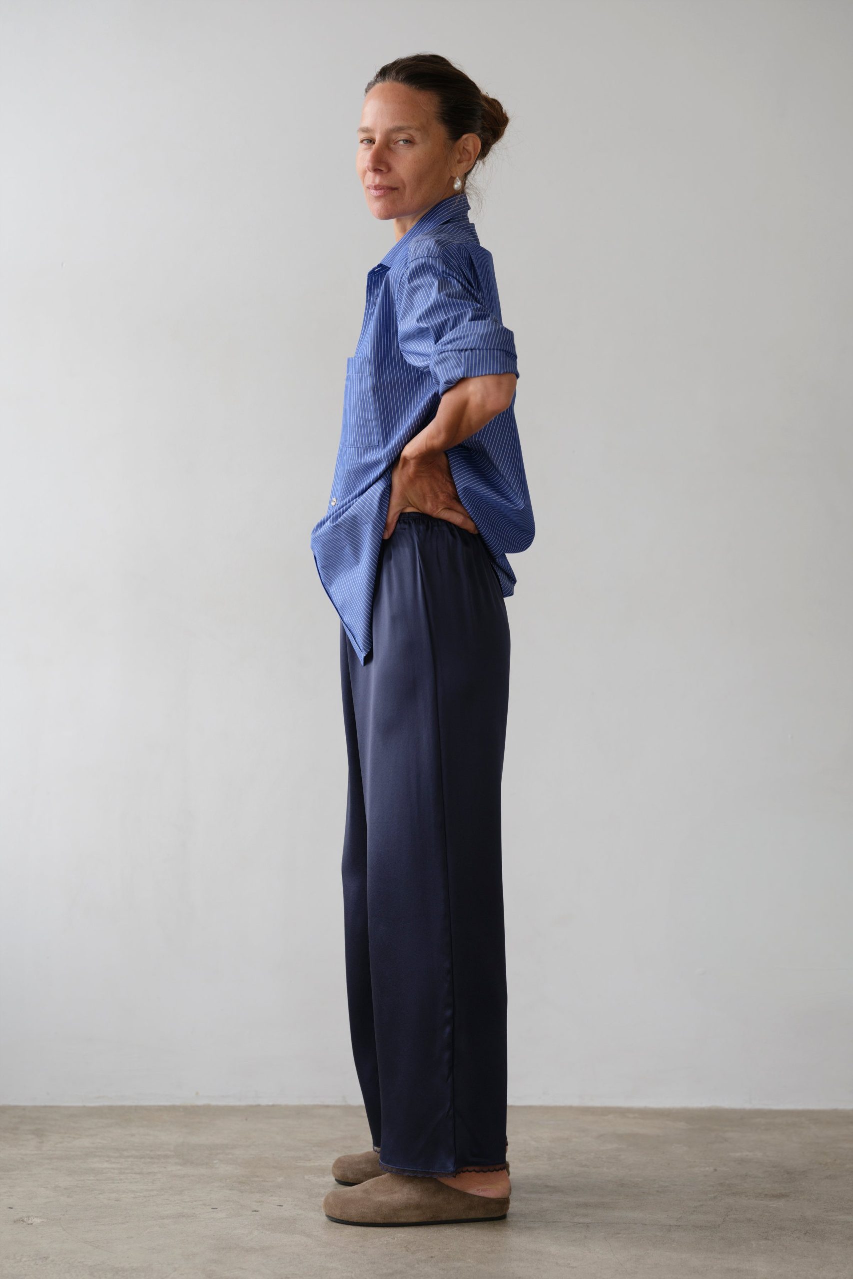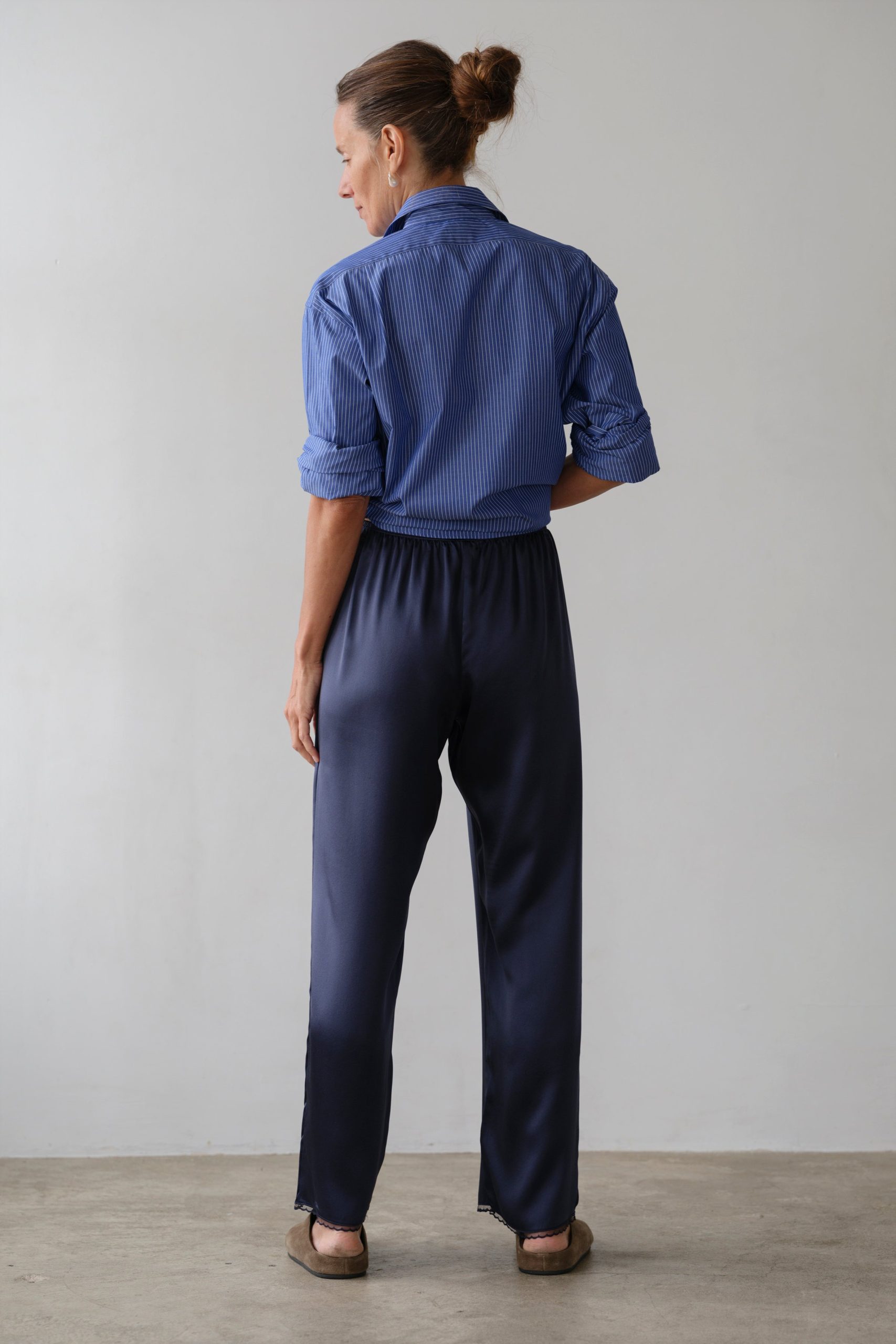 The Silk Lace Simple Pant is crafted from our luxe 100% silk, offering a fluid drape and buttery-soft feel. Designed with an easy elastic waistband and finished with a delicate lace trim at the hem for a feminine touch. A warm-weather staple—effortless paired with an oversized sweater or a classic tee.