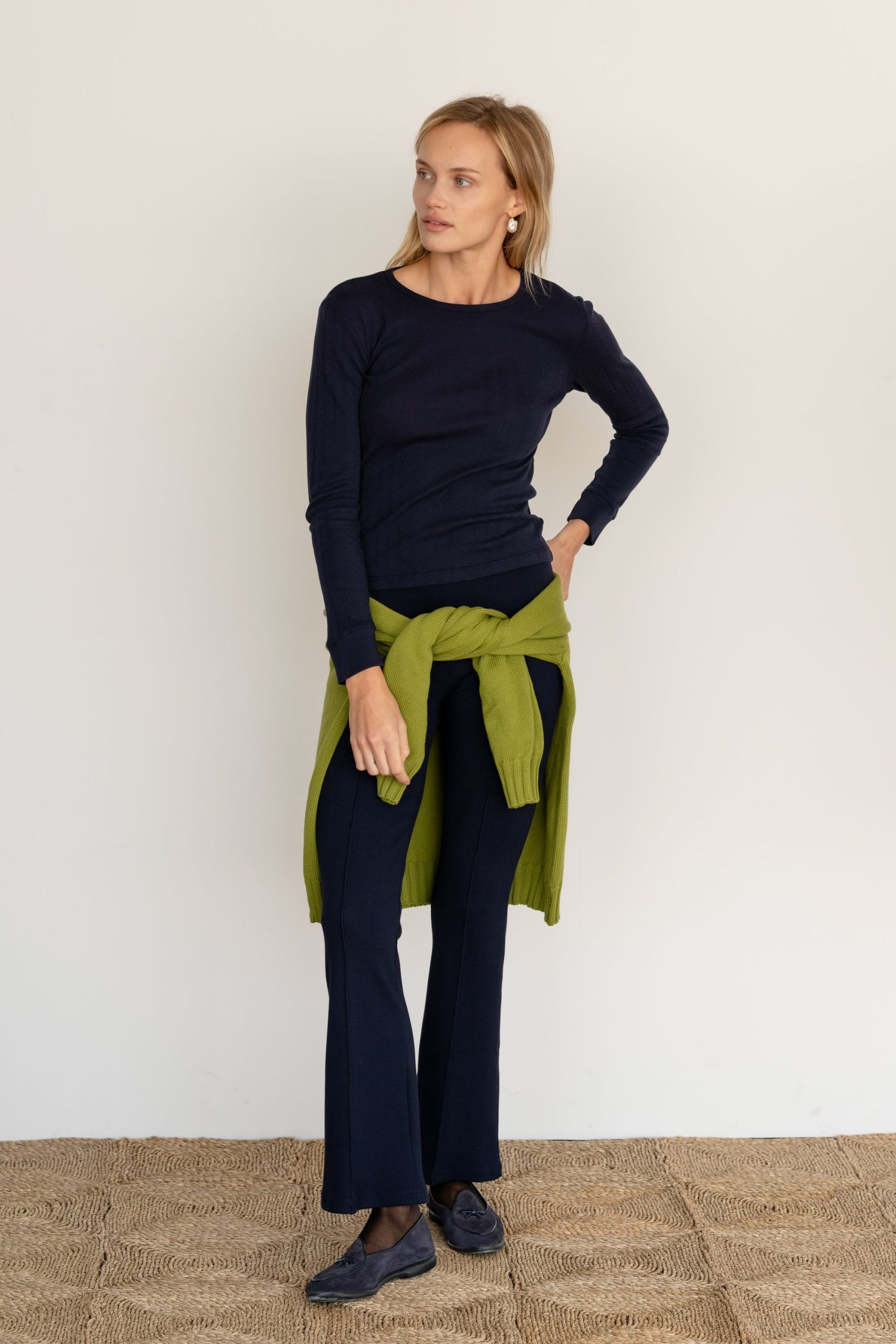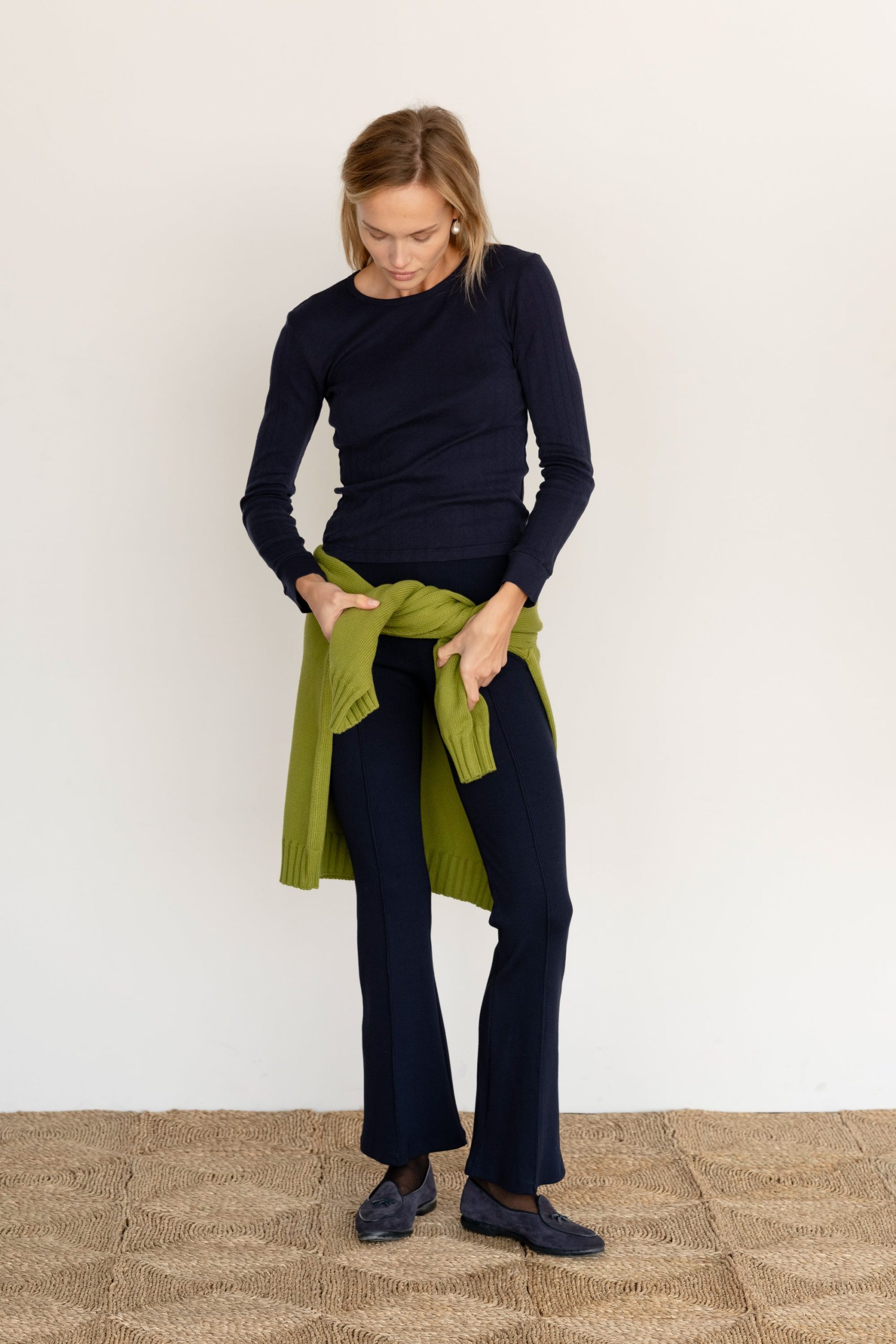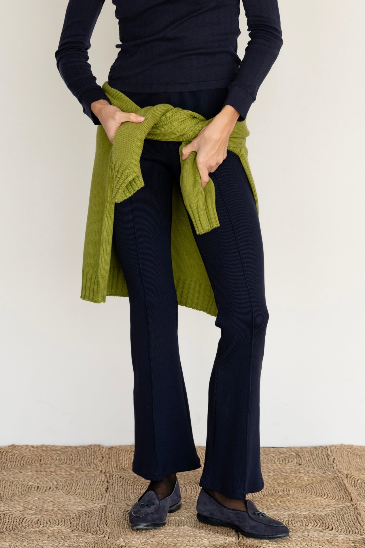 Our #1 best-seller. A fitted, ribbed pant with a classic kick flare, cropped length, and pintuck detail on the front and back. Ultra-flattering, comfortable, and effortlessly cool. The same fit you know and love now in a longer inseam.