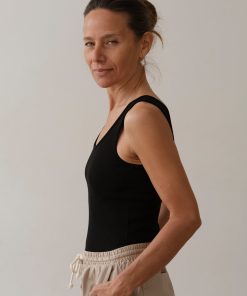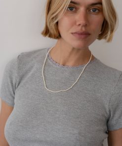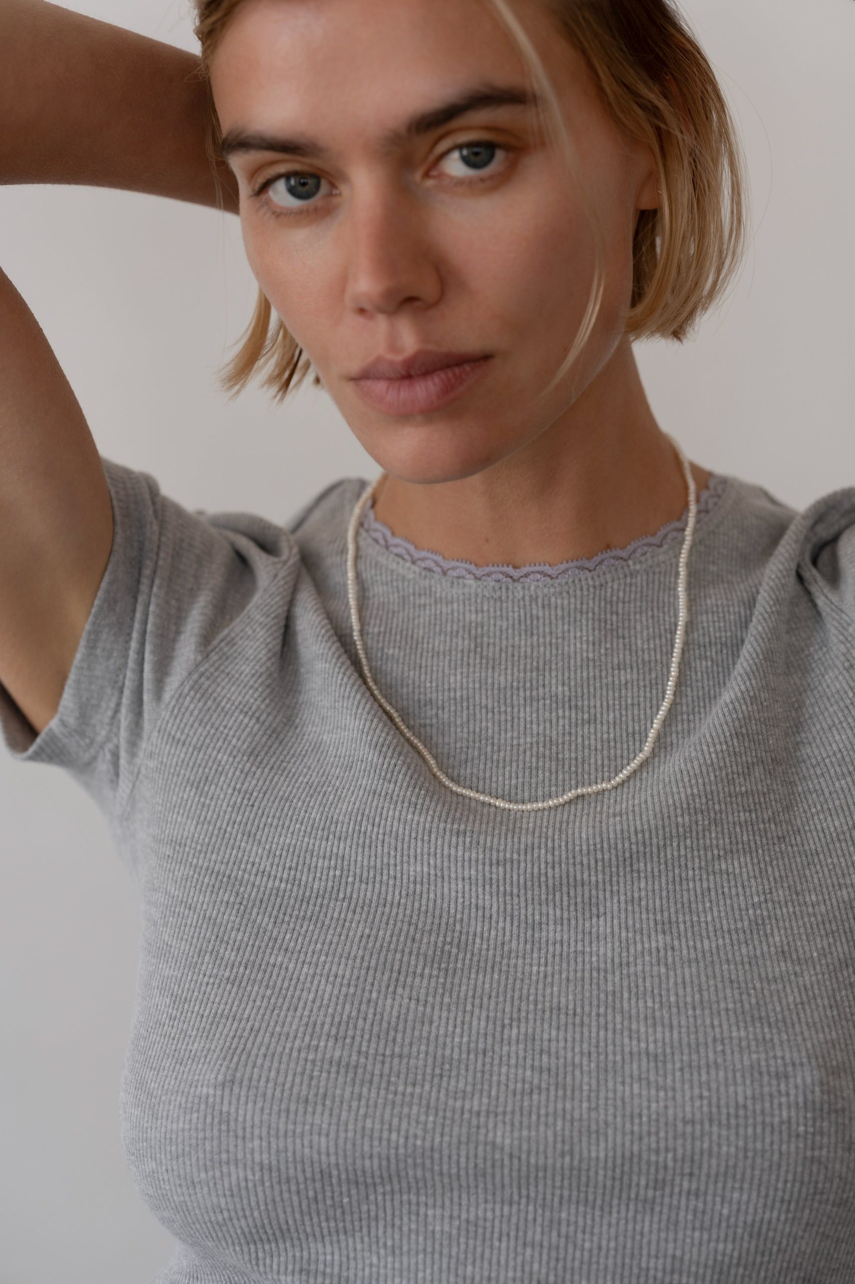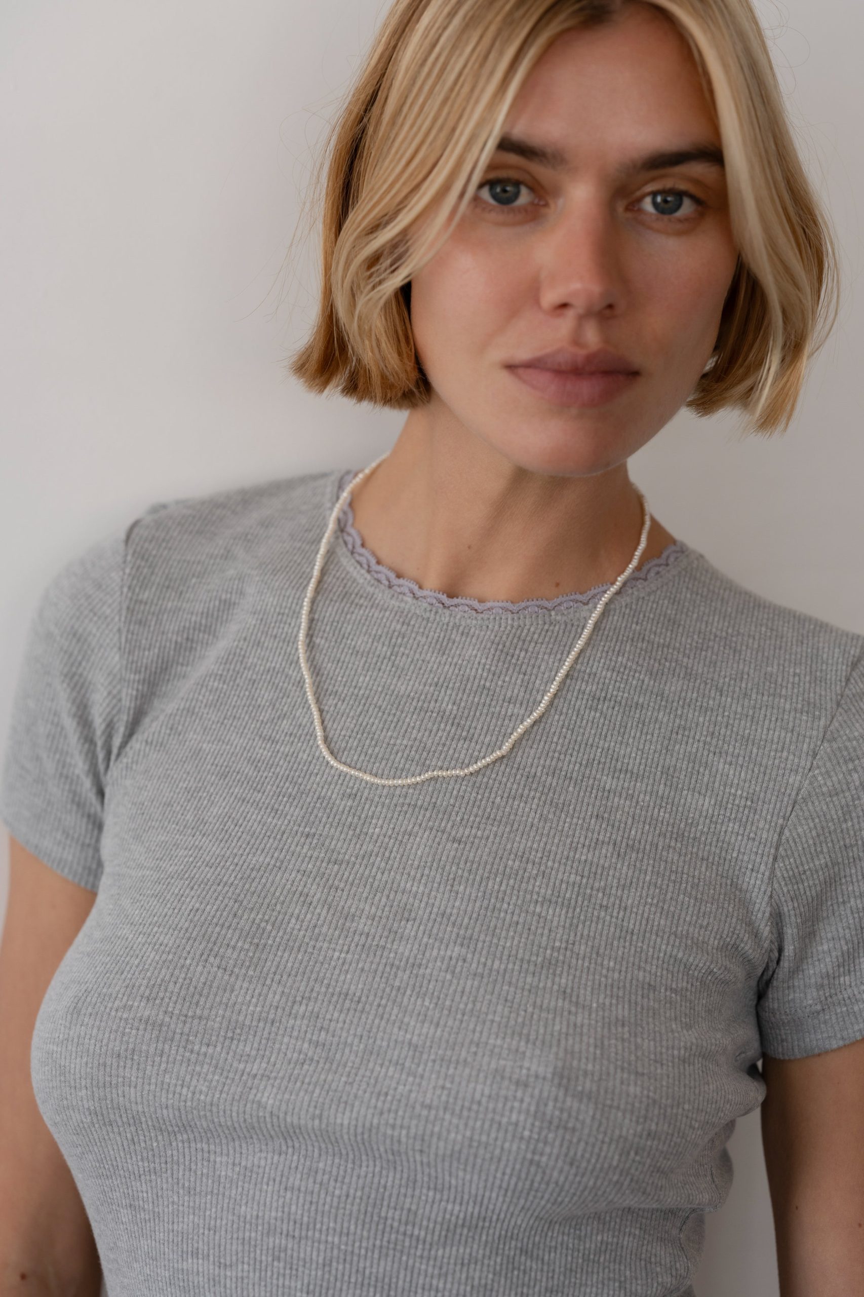 The Vintage Rib Lace Tee is crafted from 100% cotton and features ultrasoft micro ribbing, lace-trimmed edges, and a true-to-size fit for easy everyday wear.
